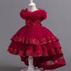 Детское кружевное платье принцессы со шлейфом, возраст 2-13 лет, летний сетчатый дизайн для девочек