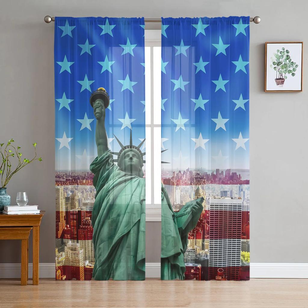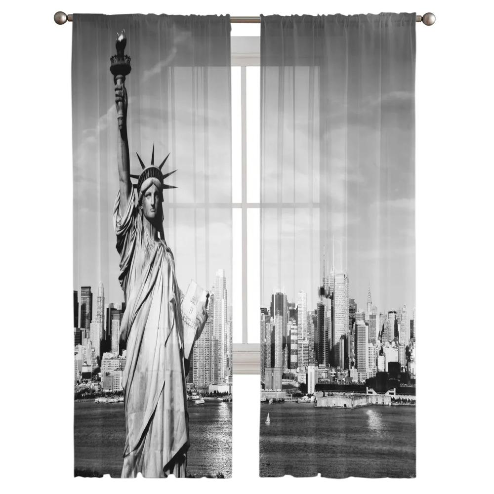 Статуя Свободы Черно-белые Тюльные Шторы для Окна Гостиная Органза Прозрачная Вуаль Шторы Спальня Кухня Домашний Декор Драпировка