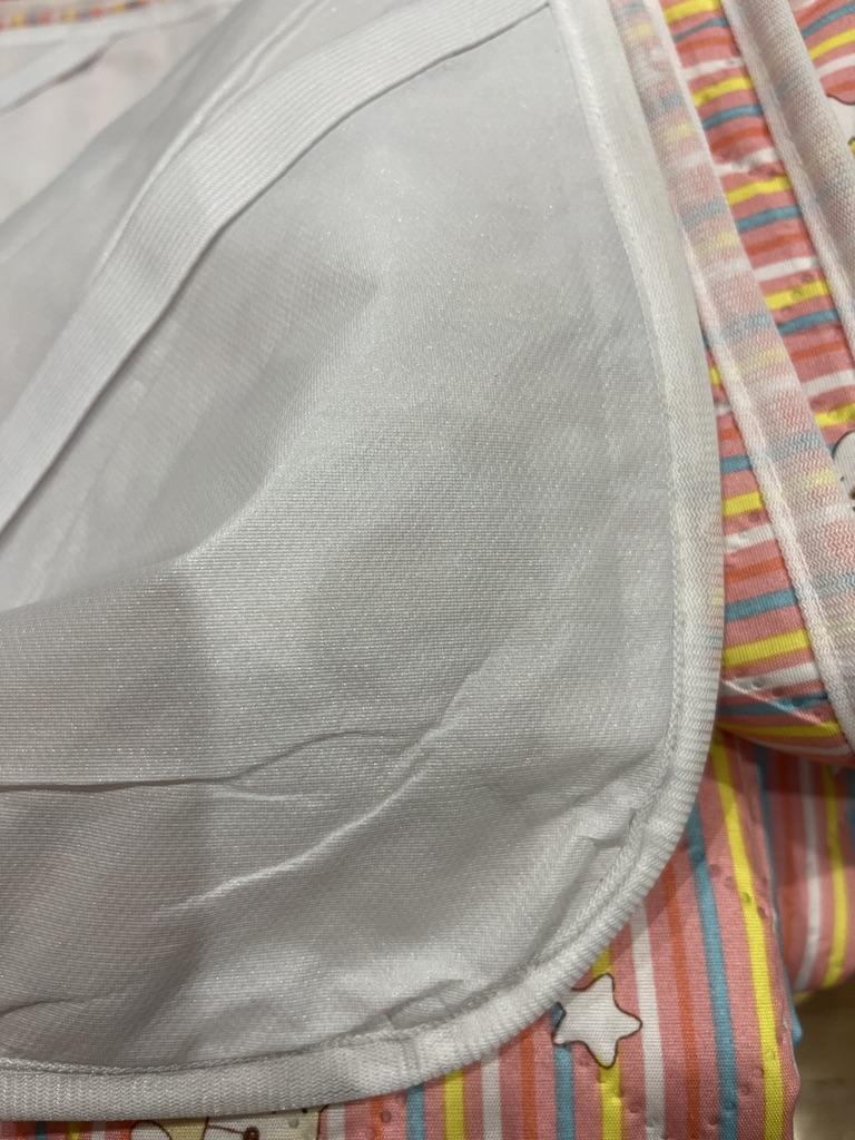 Пеленка по всему размеру не прошита, при любом движении от а сминается. Ее надо класть под простынь, чтоб она не шевелилась. Ну и какой смысл? Как ее стирать, если все слои держатся только строчкой по периметру?