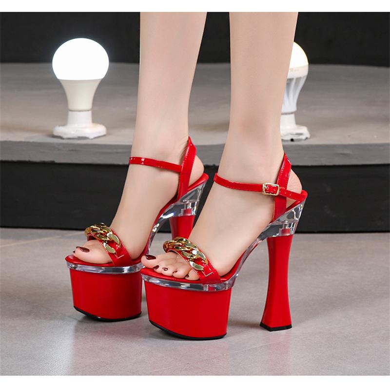 Новые туфли на платформе с высоким каблуком, металлическими украшениями, пряжками, ремешками, босоножки на толстом каблуке, летняя женская обувь для ночного клуба и вечеринок на пилоне