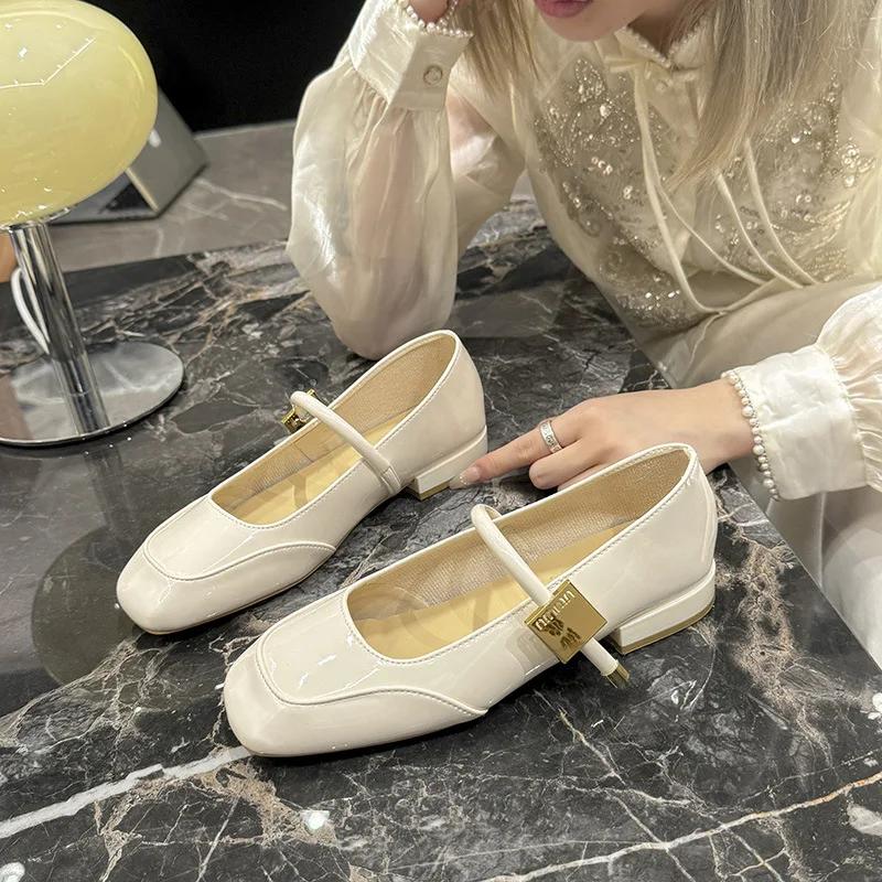 2024 Туфли Мэри Джейн для женщин Новые модные женские туфли на среднем каблуке Удобные и мягкие красные балетки