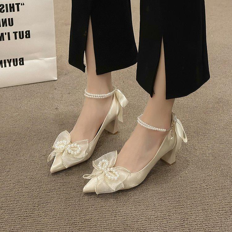 Летняя женская обувь, мода 2024 года, новые босоножки на низком каблуке с бантом, сексуальные босоножки на шпильках Baotou, легкие босоножки для вечеринок De Mujer