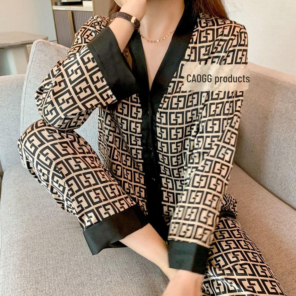 Женский пижамный комплект Ice Silk с V-образным вырезом - стиль весна/осень — купить товар онлайн с бесплатной доставкой по всему миру!