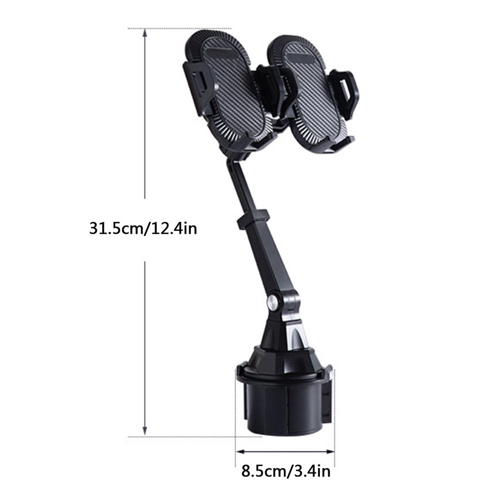 Двойной держатель для телефона для автомобильного подстаканника, держатель для телефона, устойчивое и регулируемое двойное автомобильное крепление для телефона, совместимое со всеми мобильными телефонами