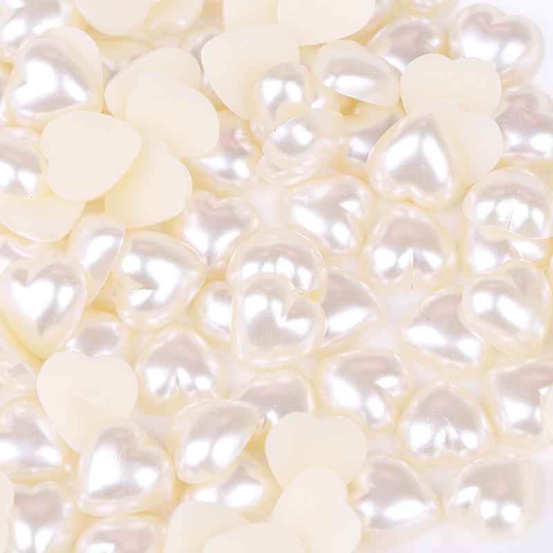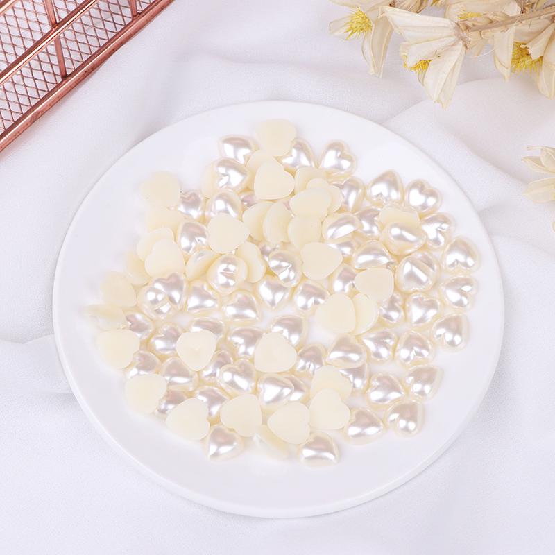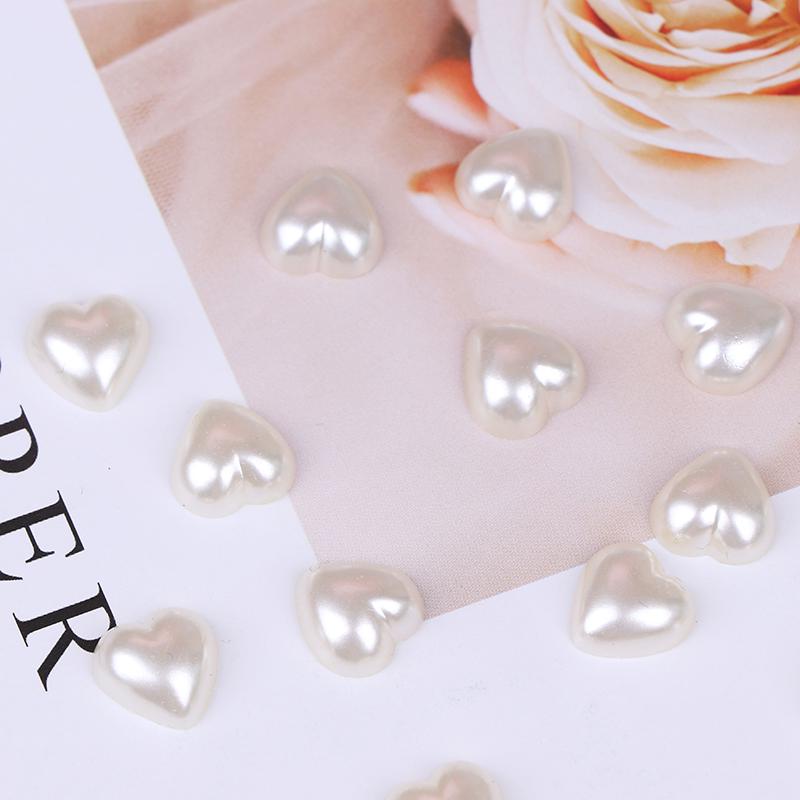 100 шт./лот, плоские бусины «сделай сам», бусины в форме сердца, искусственный жемчуг, плоская задняя часть