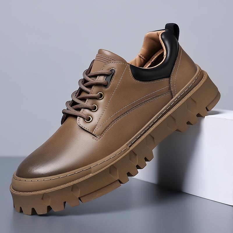 Мужские оксфорды на шнуровке, модная повседневная обувь с круглым носком, толстая подошва, кожаные туфли на плоской подошве, мужские уличные деловые туфли — купить товар онлайн с бесплатной доставкой по всему миру!