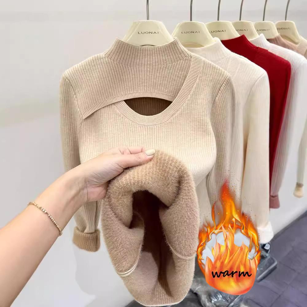 Женская осенне-зимняя плюс бархатная ажурная полуводолазка трикотажная кофта нижняя часть рубашки для женщин утолщенный теплый внутренний топ со средним воротником — купить товар онлайн с бесплатной доставкой по всему миру!