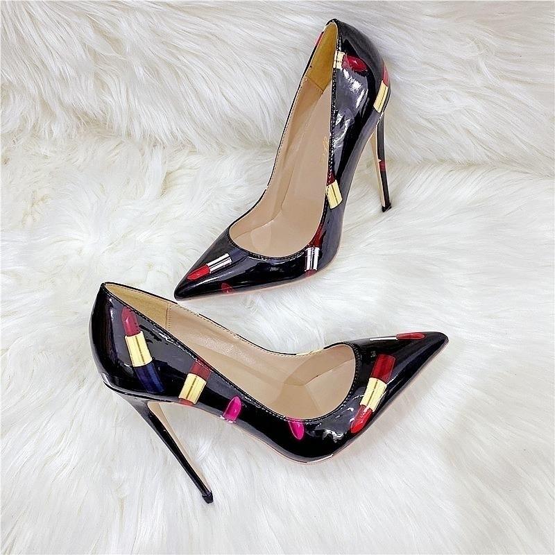 Новые слоганы граффити знаменитости высокие каблуки, платье остроносые женские туфли с неглубоким вырезом, модные банкетные туфли 8 см 10 см 12 см тонкие