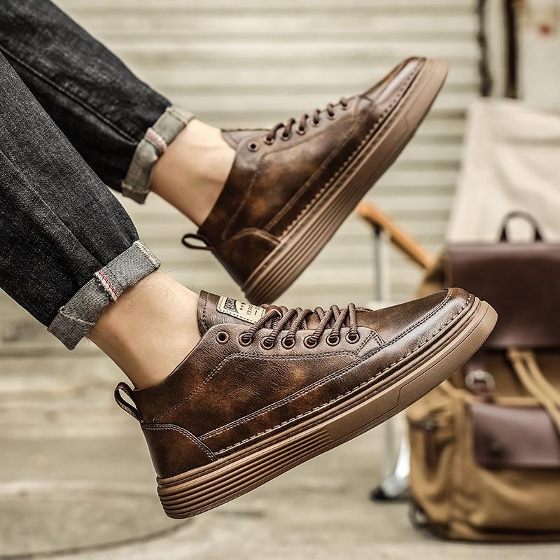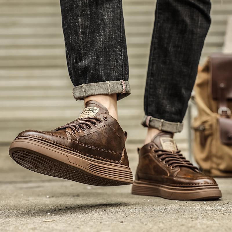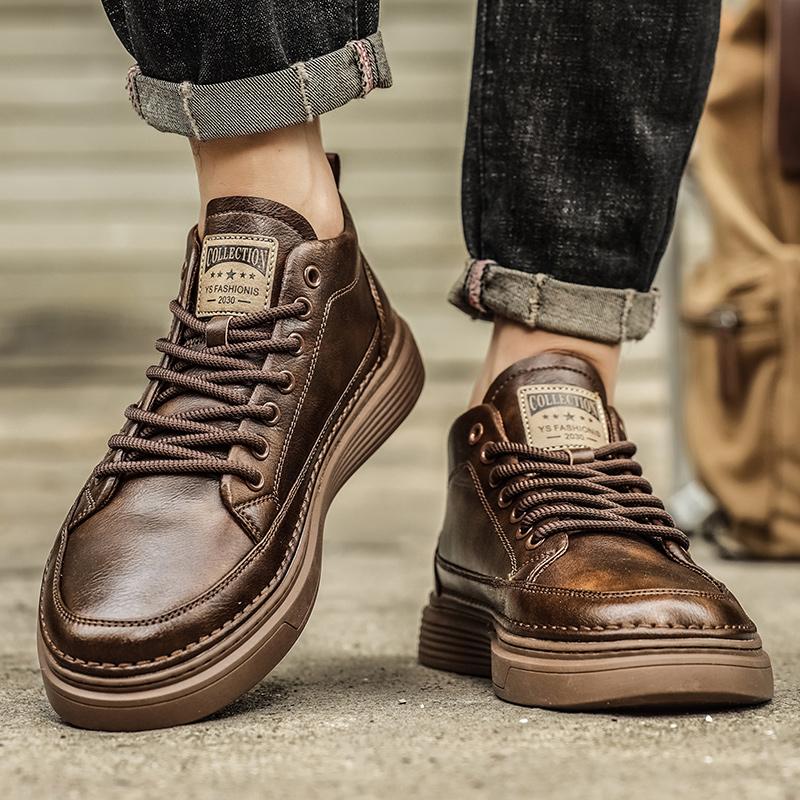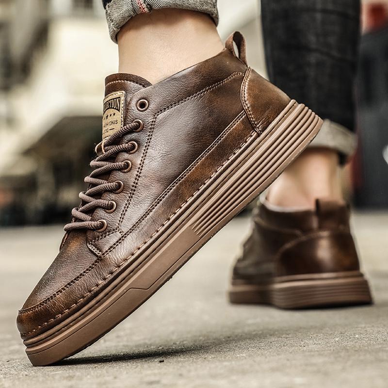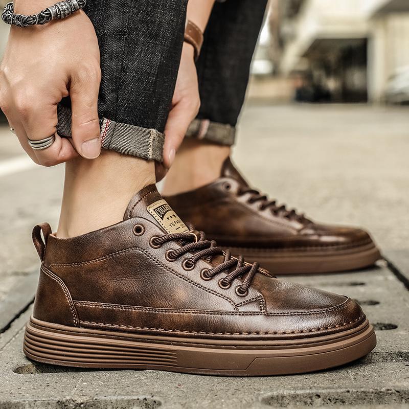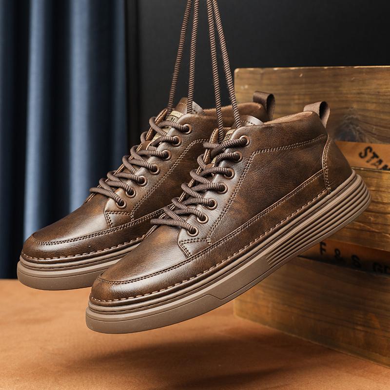 Повседневная обувь мужская на шнуровке модные удобные мягкие кожаные кроссовки средней высоты роскошные мужские ботинки деловая обувь для работы на открытом воздухе