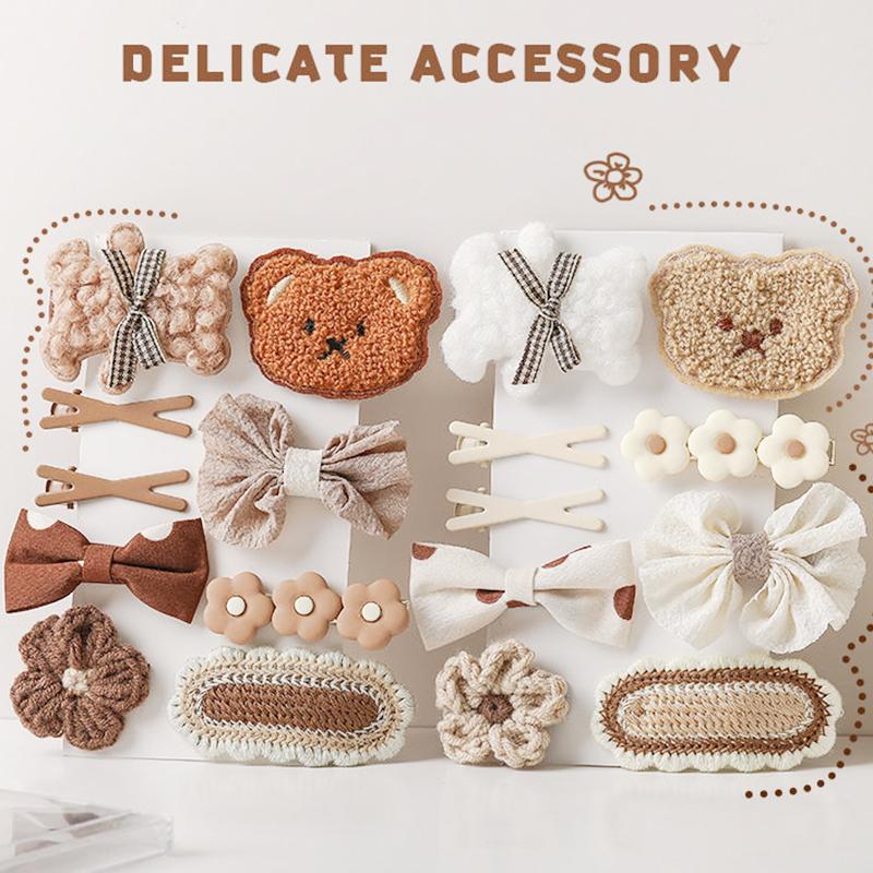 9 шт./компл. корейские заколки для волос, милые плюшевые мишки, вязаные заколки для девочек, заколки с бантами и цветами, детские аксессуары для волос
