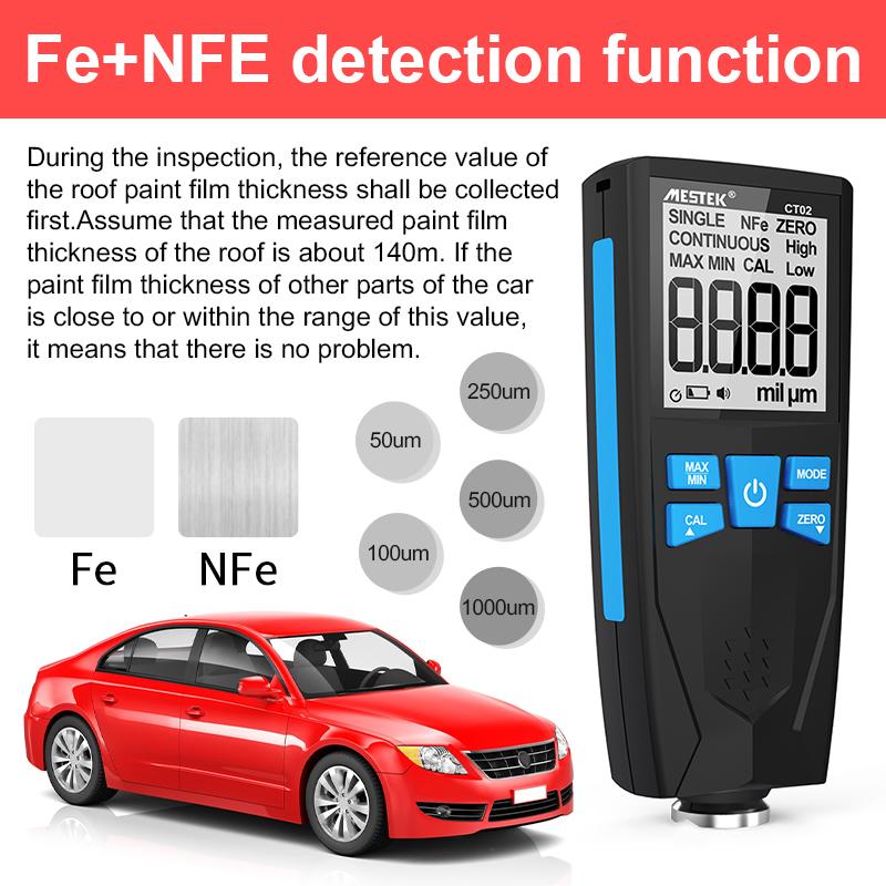 Толщиномер Mestek CT02 CT02C для автомобиля 0-1500um Fe NFe толщиномер гальванического металлического покрытия инструмент для измерения толщины краски