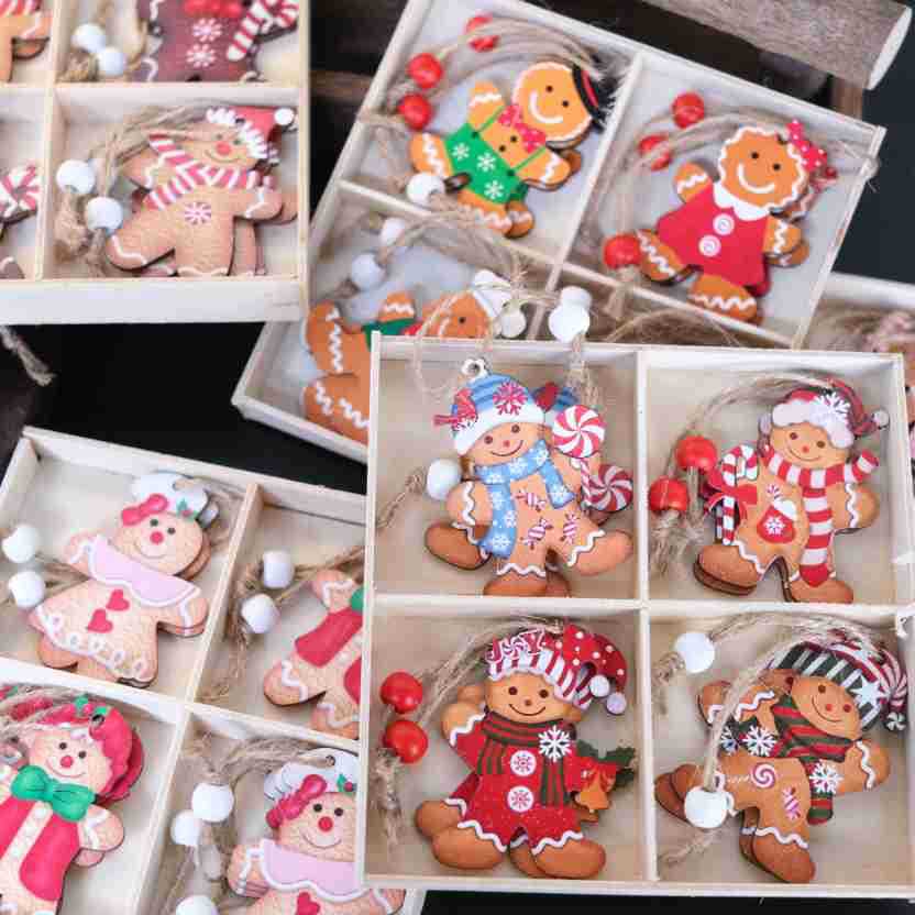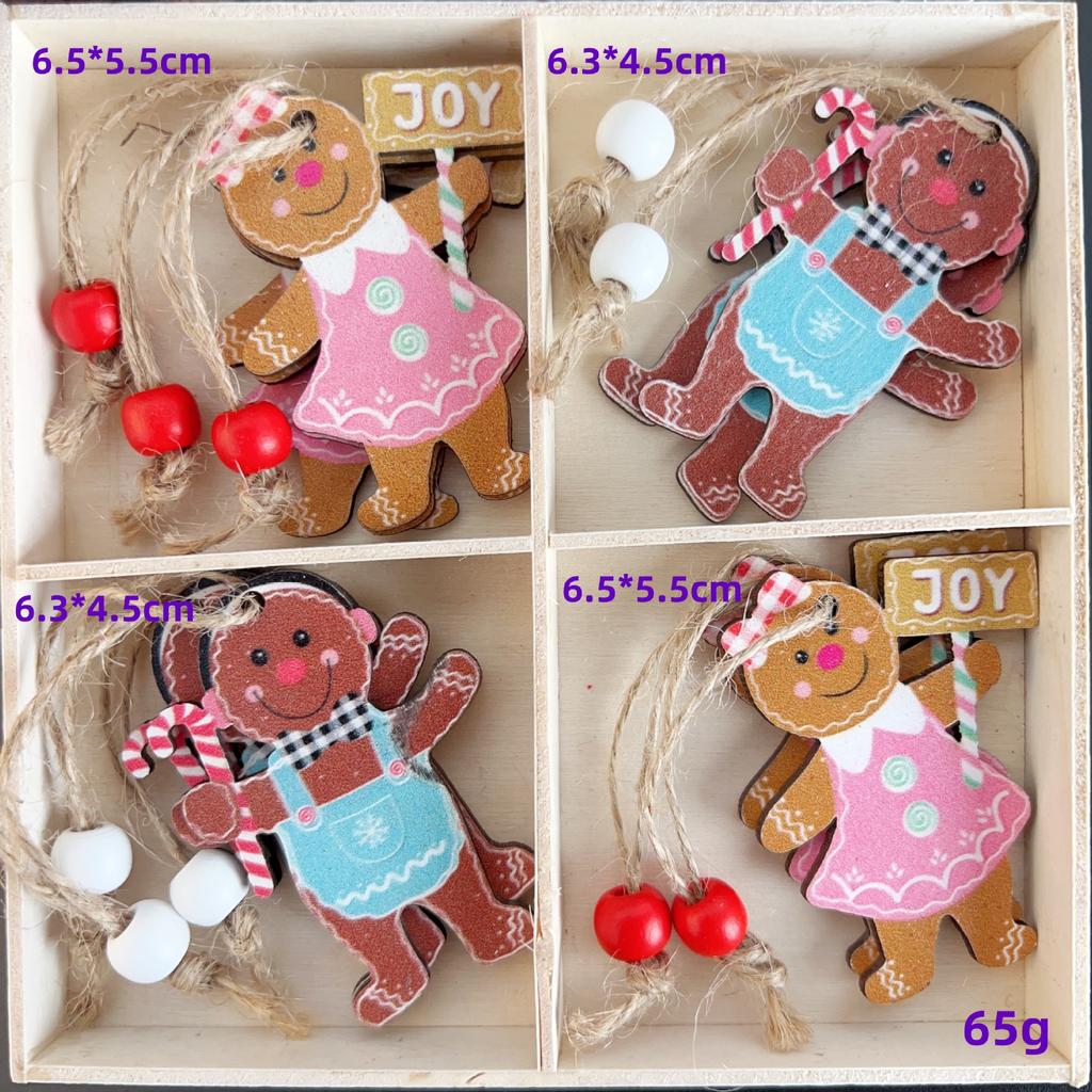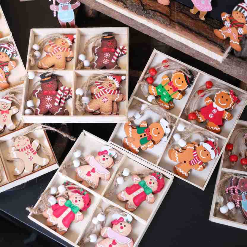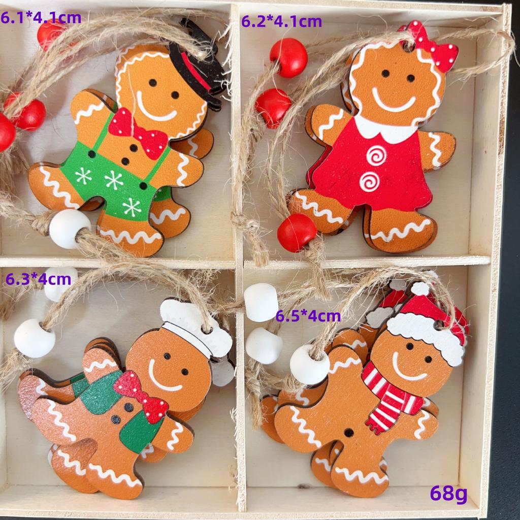 Рождественский четырехсетчатый пряничный человечек, деревянная подвеска, украшение на рождественскую елку, подарочная коробка, украшение на витрину
