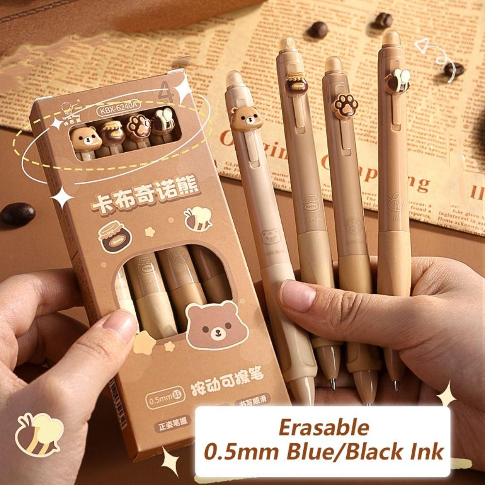 4 шт./кор. стираемая ручка с нажимным типом 0,5 мм, черные/синие чернила, нейтральная ручка, мультяшная гелевая ручка для студентов