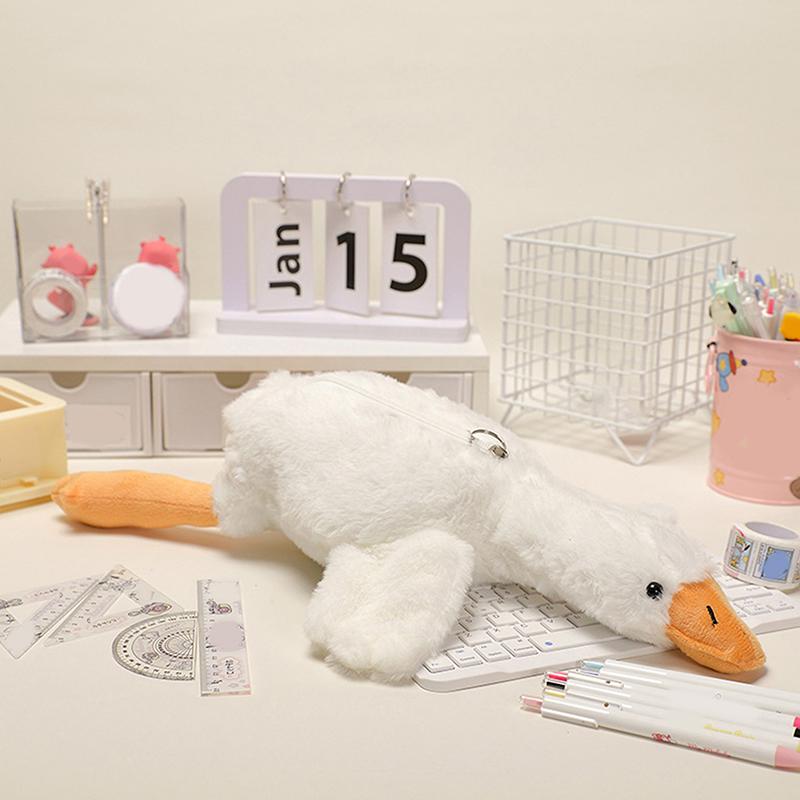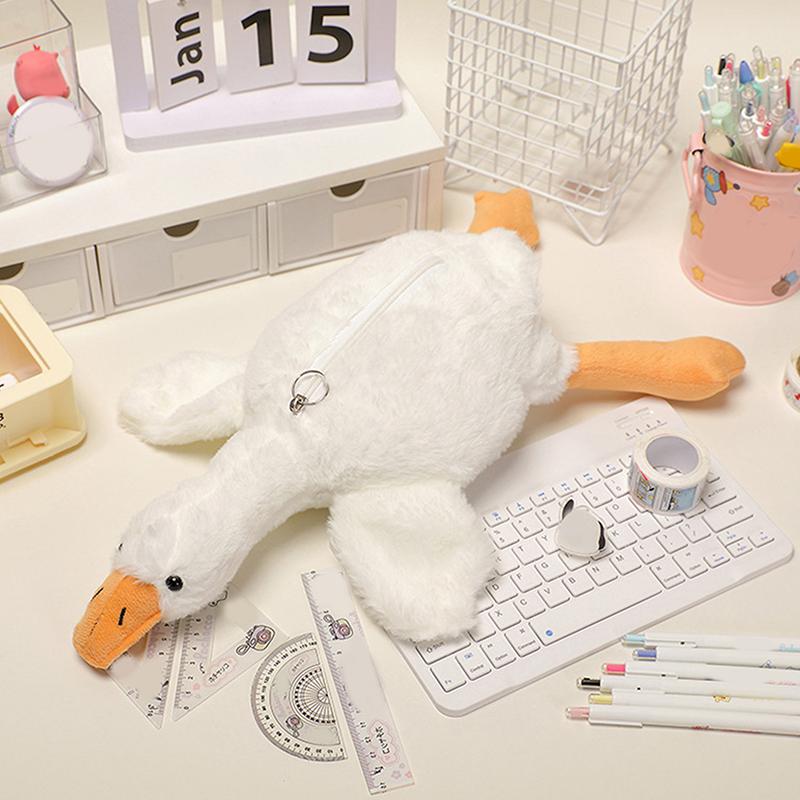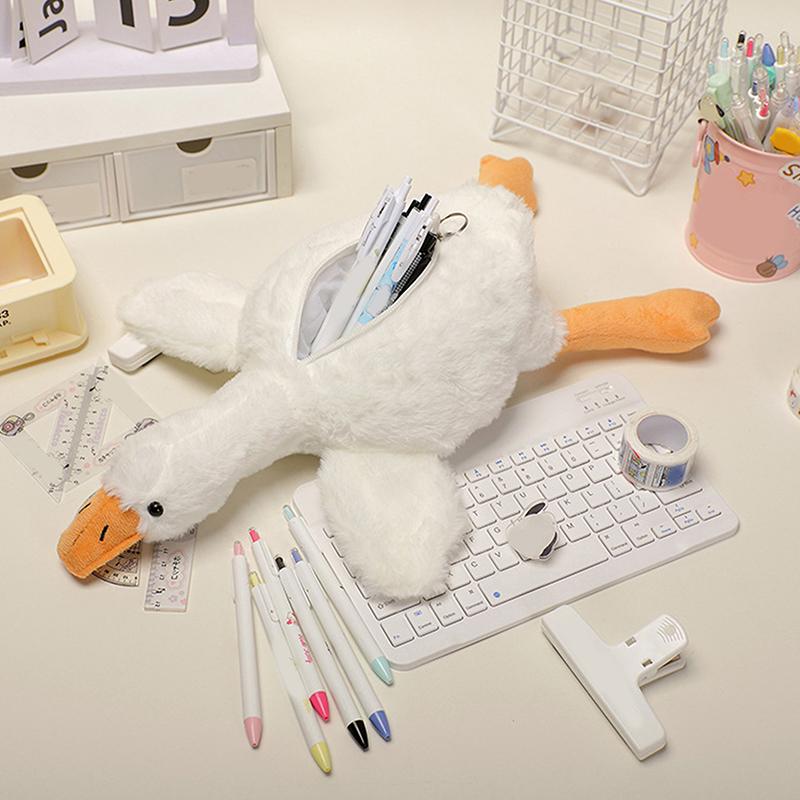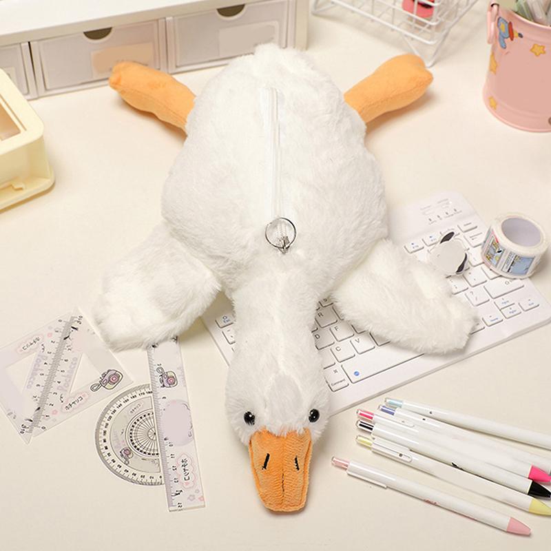 Мультяшный белый гусь плюшевая ручка сумка смешной студент животные пеналы модная канцелярская сумка для хранения милый карандаш мешочек подарки