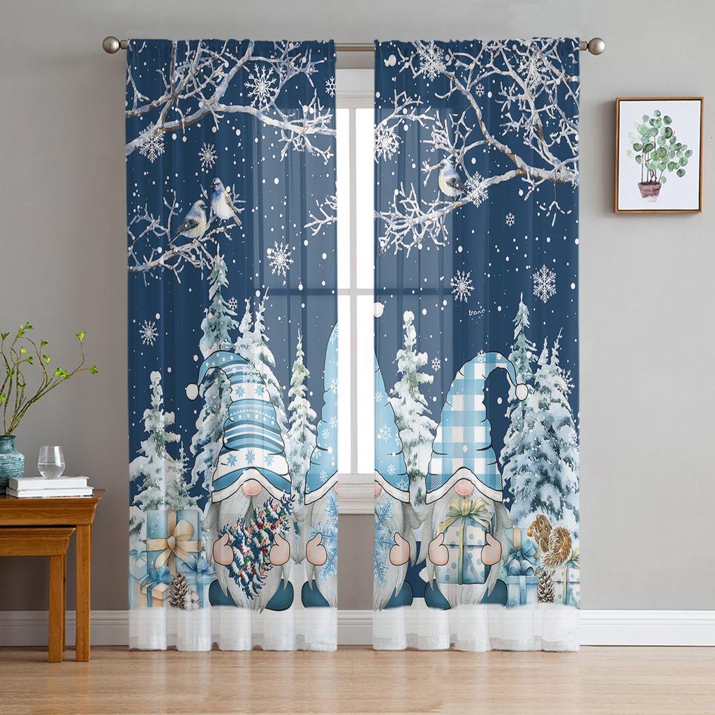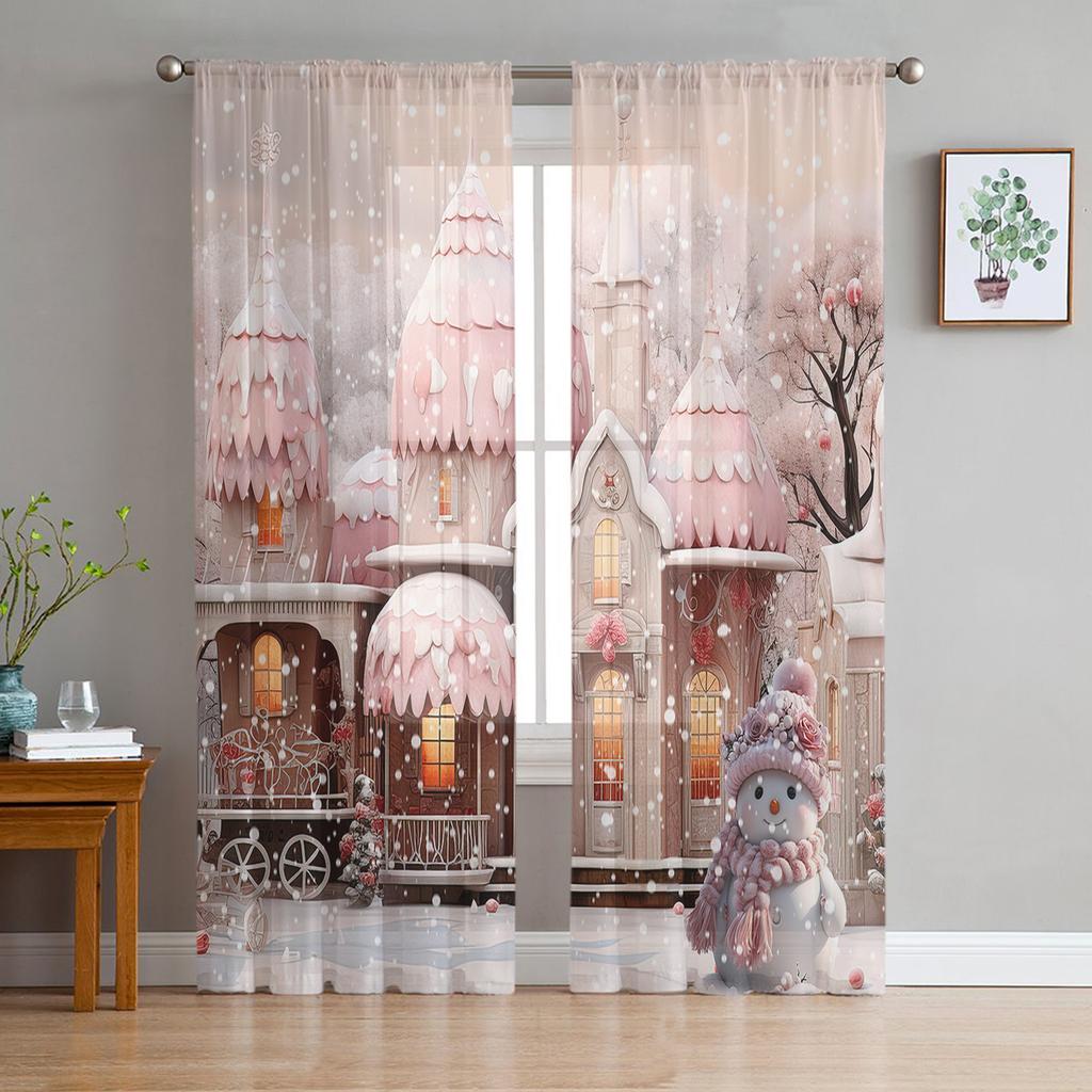 Рождественский снежный пейзаж Снежинки Гном Розовая пряжа Шторы на окна Тюль Шторы для гостиной Кухня Прозрачные вуалевые шторы