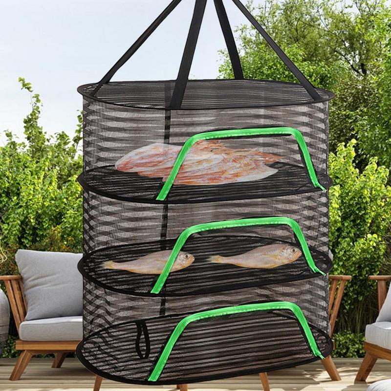 Складная сетчатая сушилка для овощей, 3 слоя, с застежками-молниями, портативная, прочная, нейлоновая веревка, многофункциональная, сетчатая сушилка для овощей — купить товар онлайн с бесплатной доставкой по всему миру!
