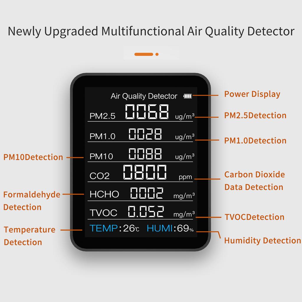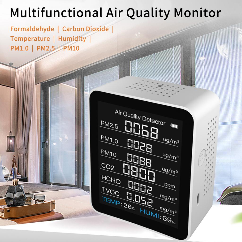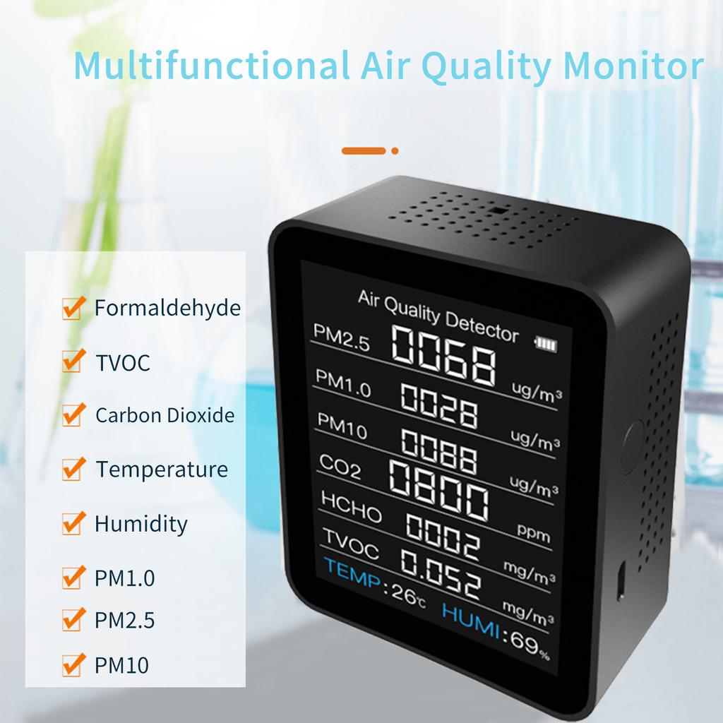 8 в 1 Интеллектуальный анализатор качества воздуха Одна машина Три экрана PM2.5 PM1.0 PM10 HCHO TVOC CO2 Детектор температуры и влажности