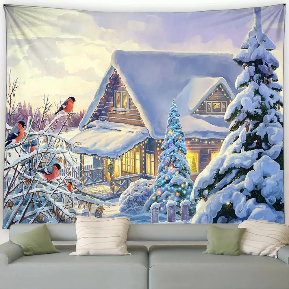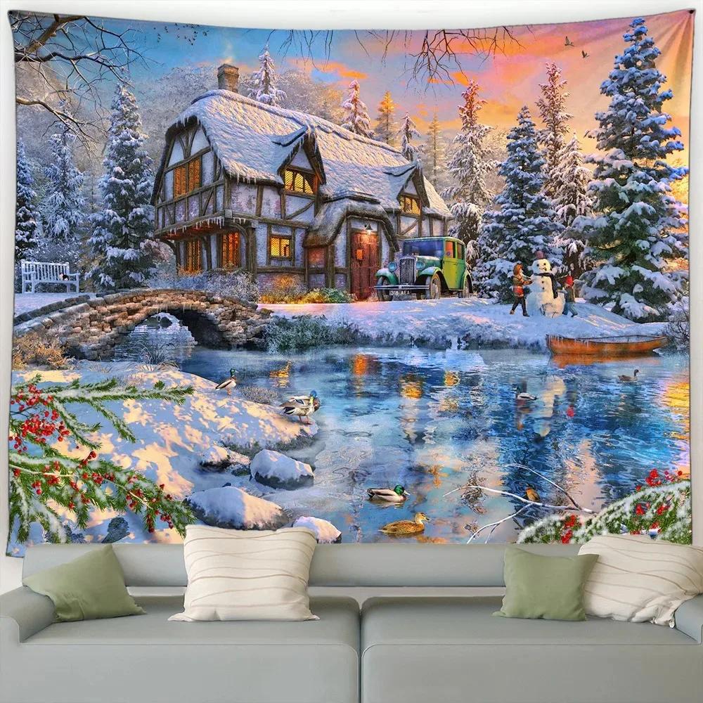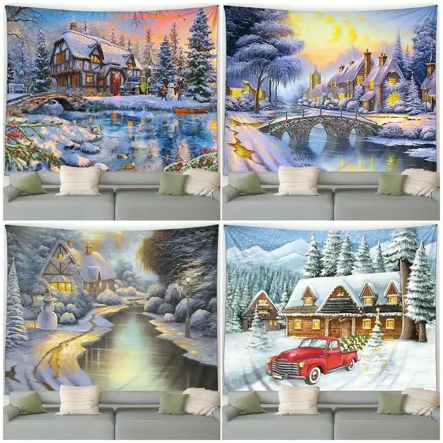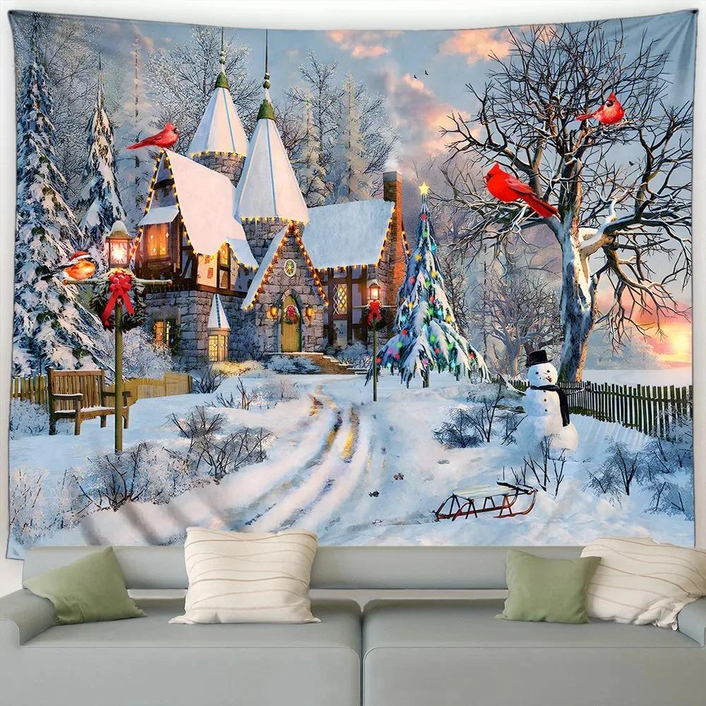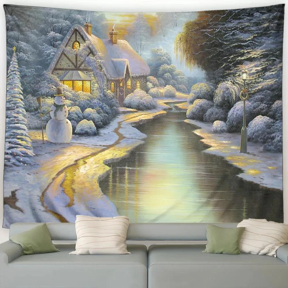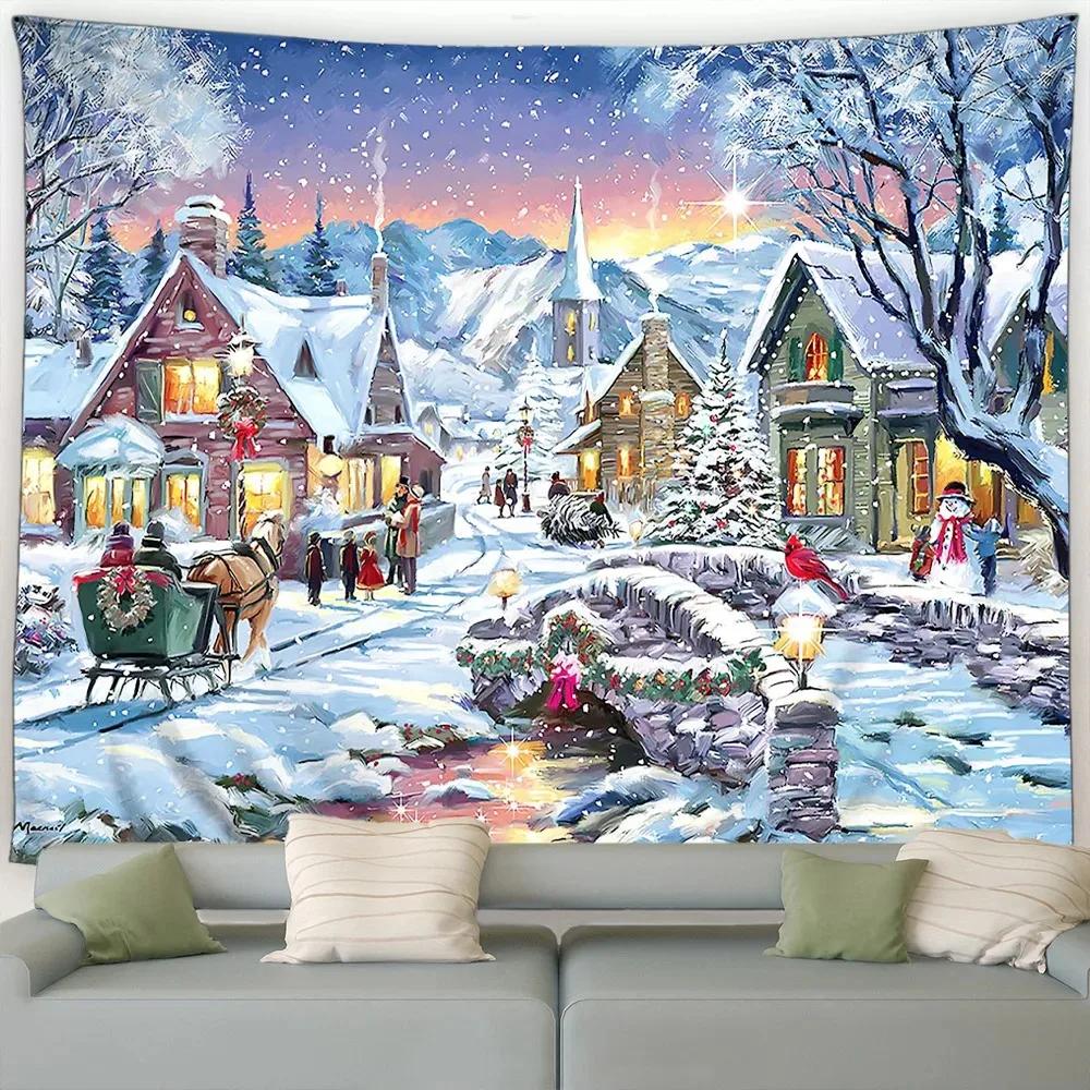 Рождественская уличная снежная сцена Гобелен Спальня Гостиная Домашний Рождественский декоративный гобелен