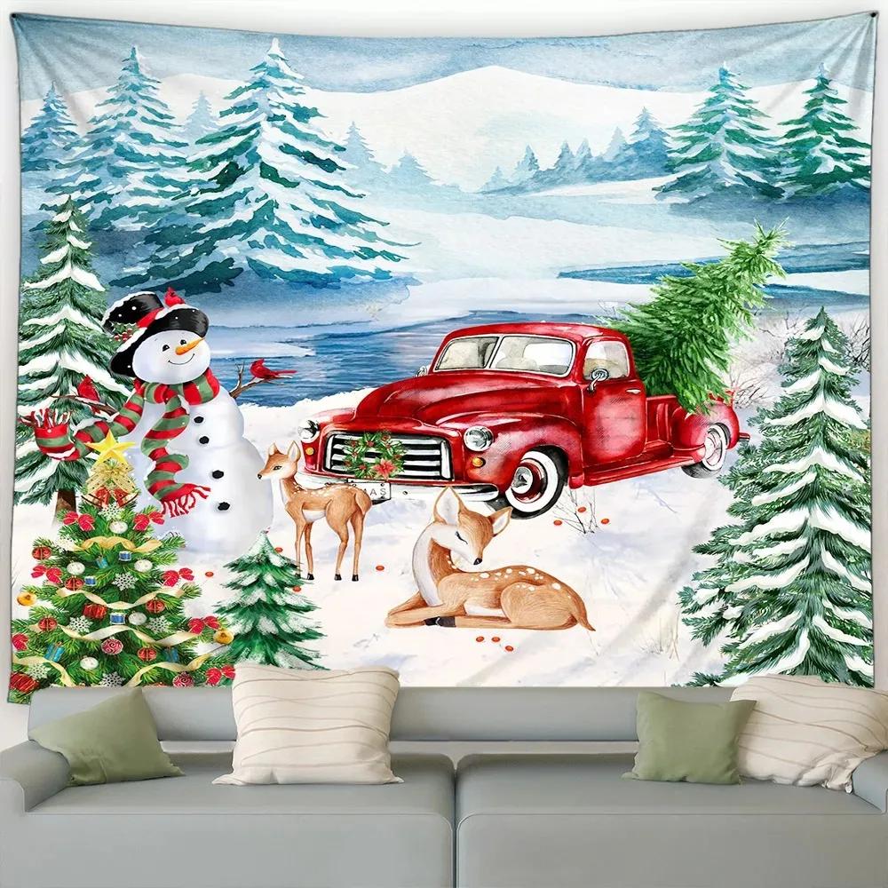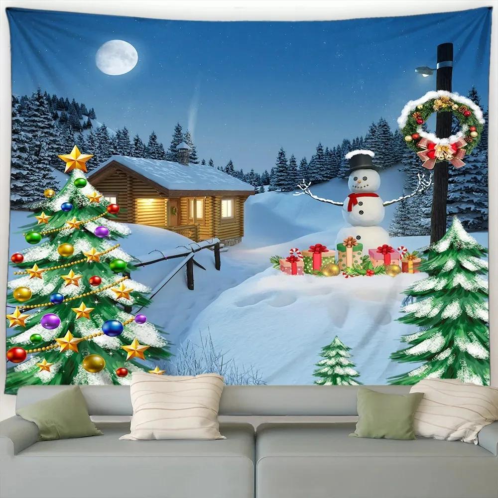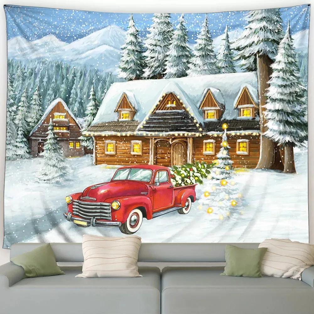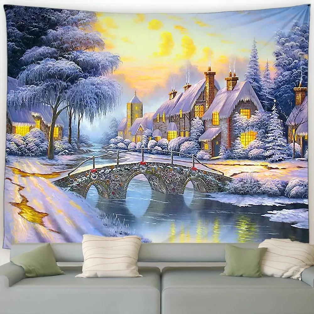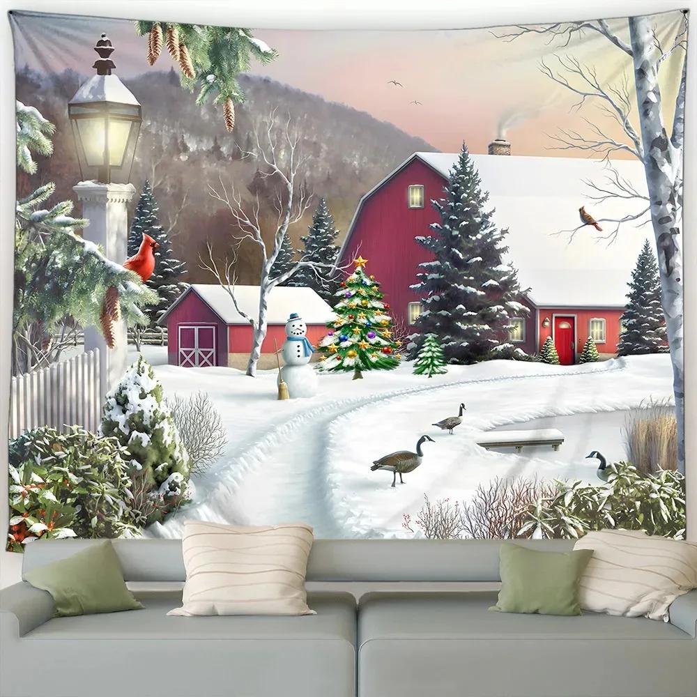 Рождественская уличная снежная сцена Гобелен Спальня Гостиная Домашний Рождественский декоративный гобелен