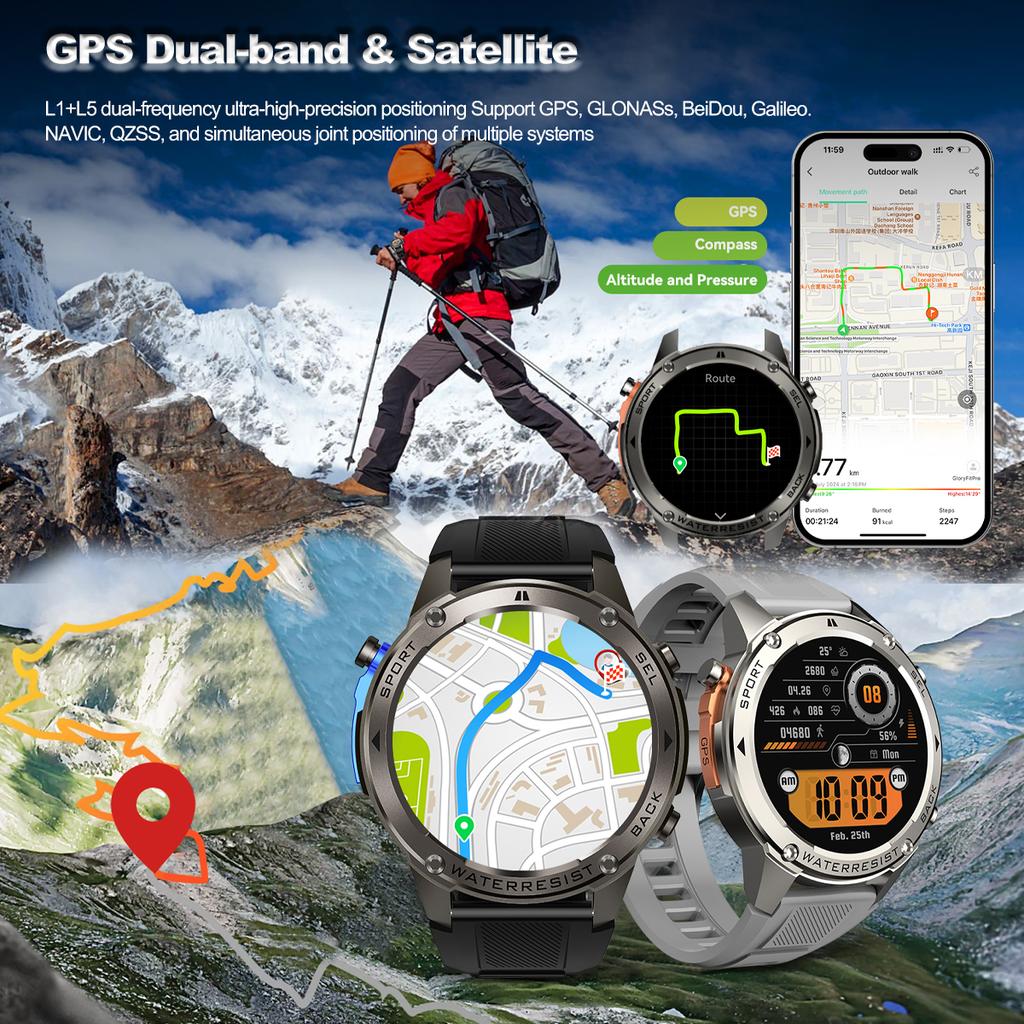 - Встроенный компас и барометрический высотомер