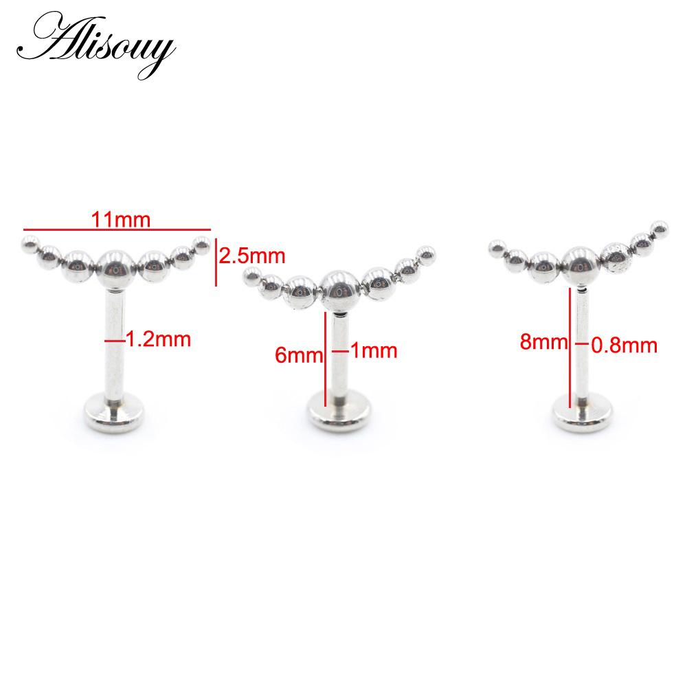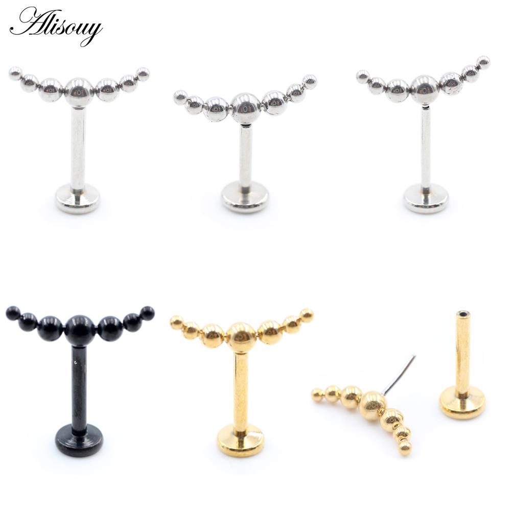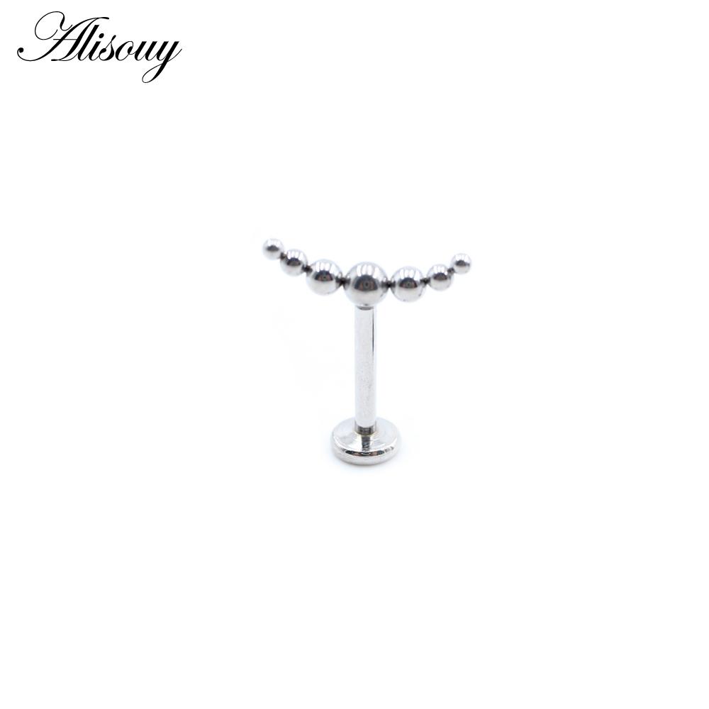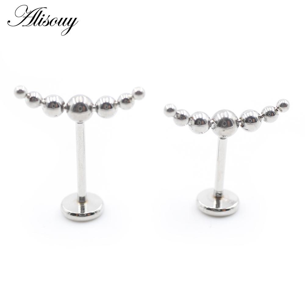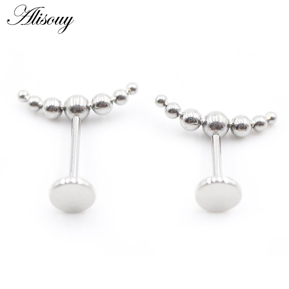 Alisouy 1PC Нержавеющая сталь Кривой Шарик Без Резьбы Ухо Козелок Улитка Лабрет Губа Кольцо Хрящ Серьги-гвоздики Пирсинг Украшения Для Тела