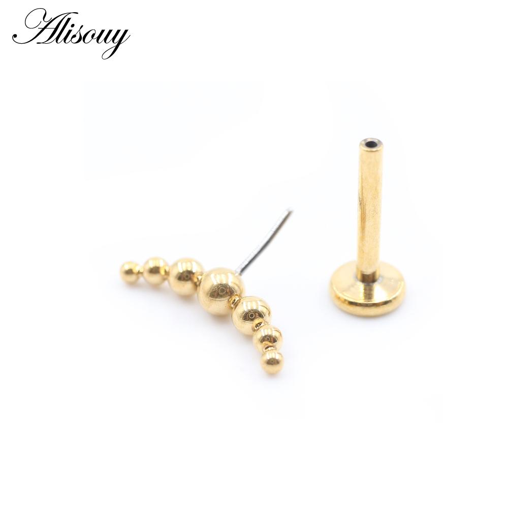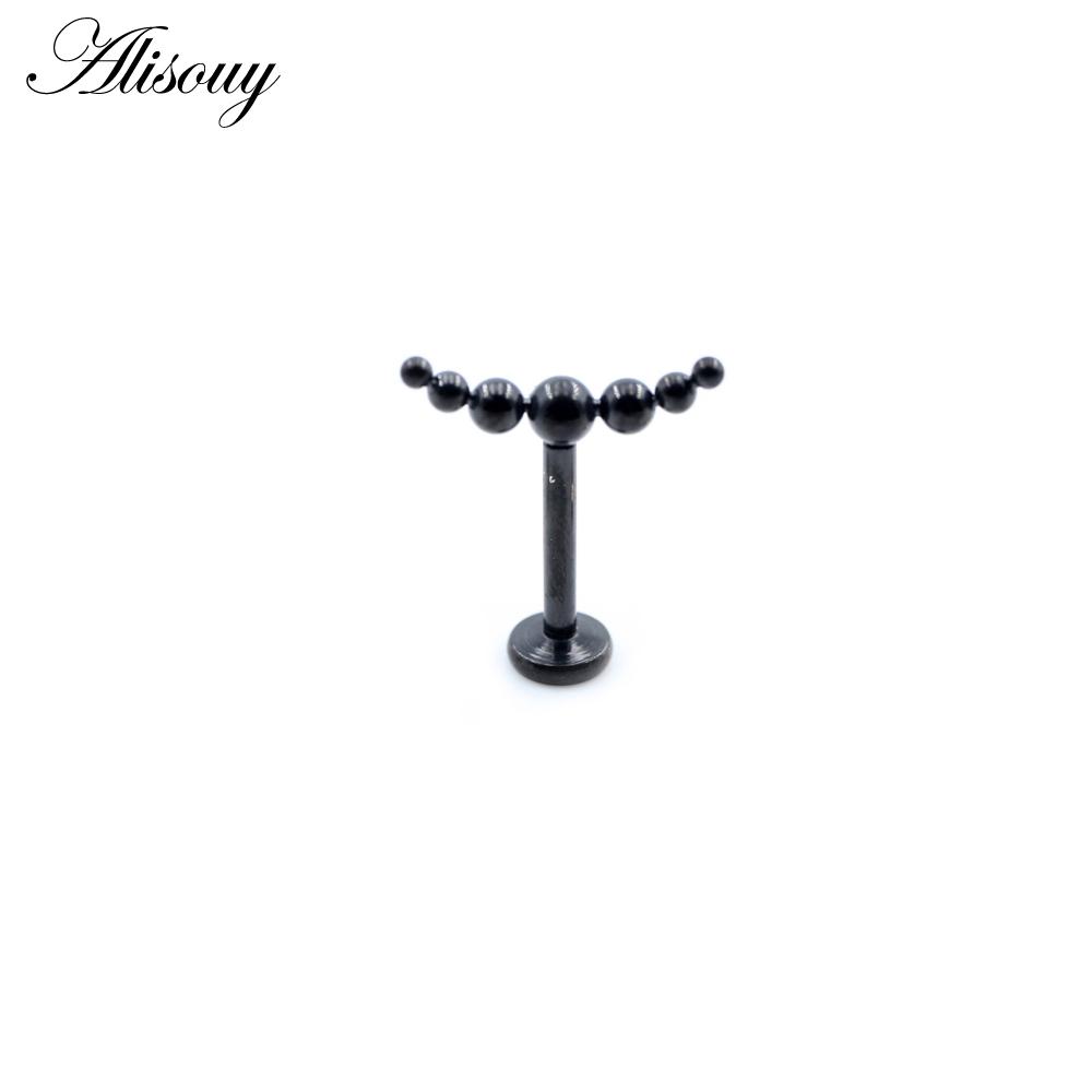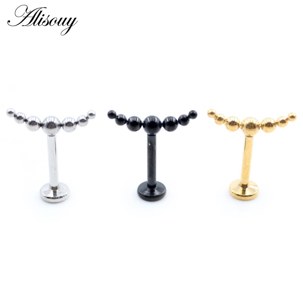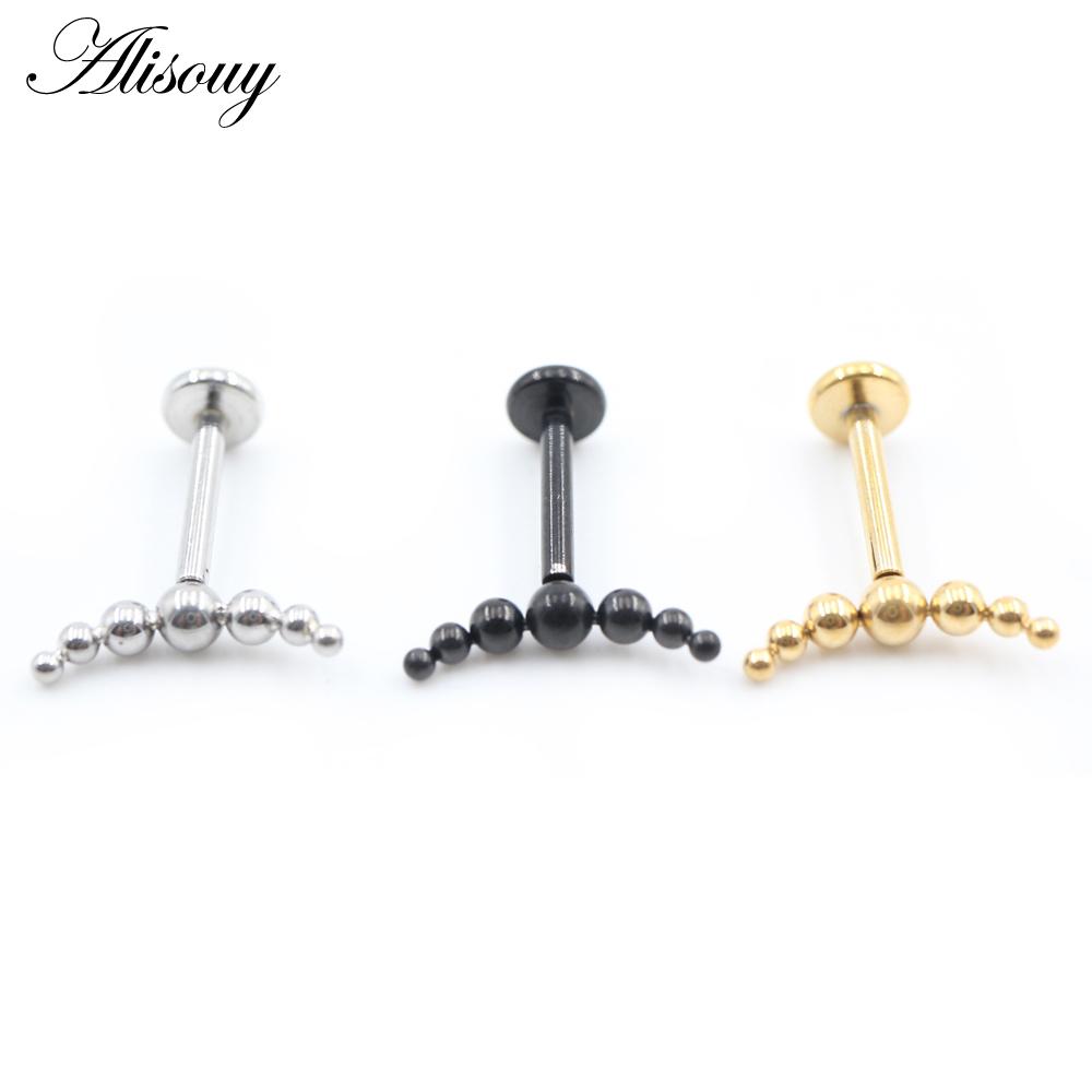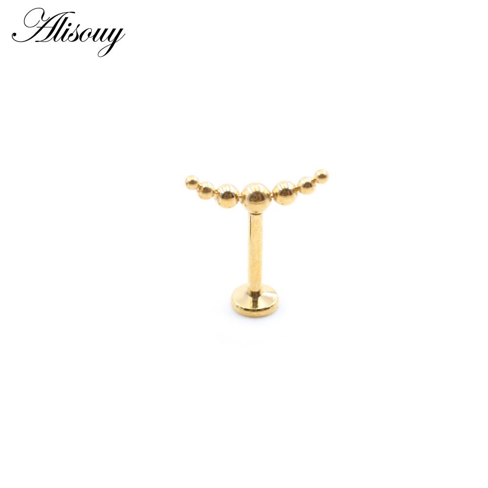Alisouy 1PC Нержавеющая сталь Кривой Шарик Без Резьбы Ухо Козелок Улитка Лабрет Губа Кольцо Хрящ Серьги-гвоздики Пирсинг Украшения Для Тела