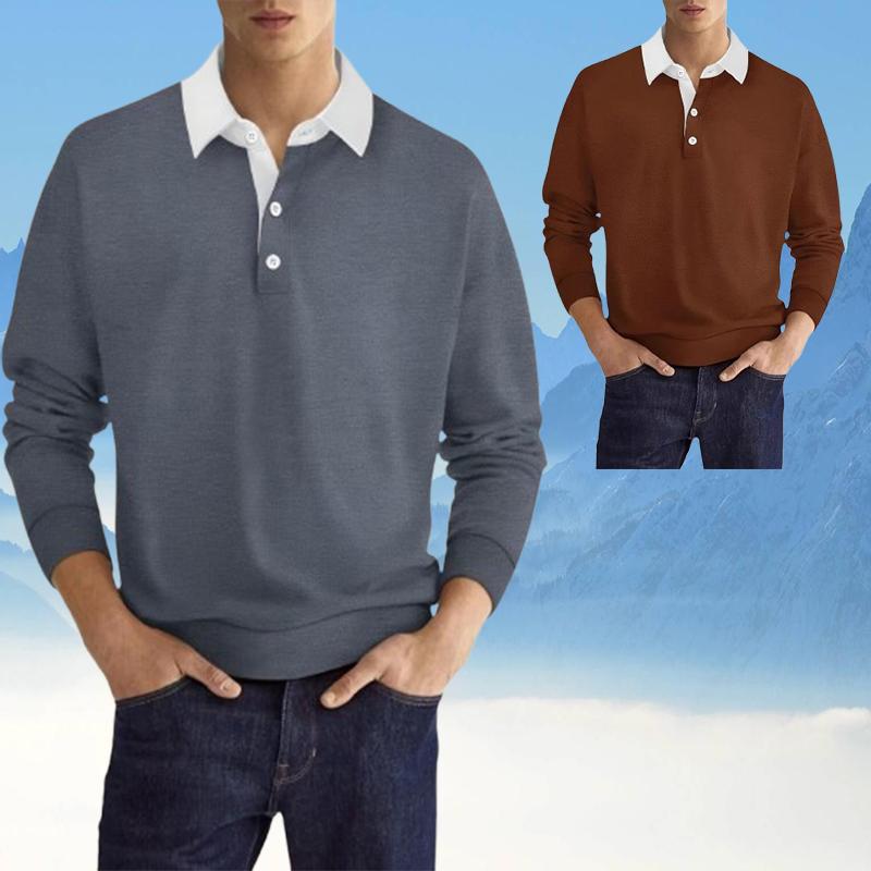 Модные контрастные цветные рубашки поло с лацканами для мужчин, повседневные свитера с длинным рукавом и пуговицами, мужские весенне-осенние модные рубашки поло в стиле пэчворк — купить товар онлайн с бесплатной доставкой по всему миру!