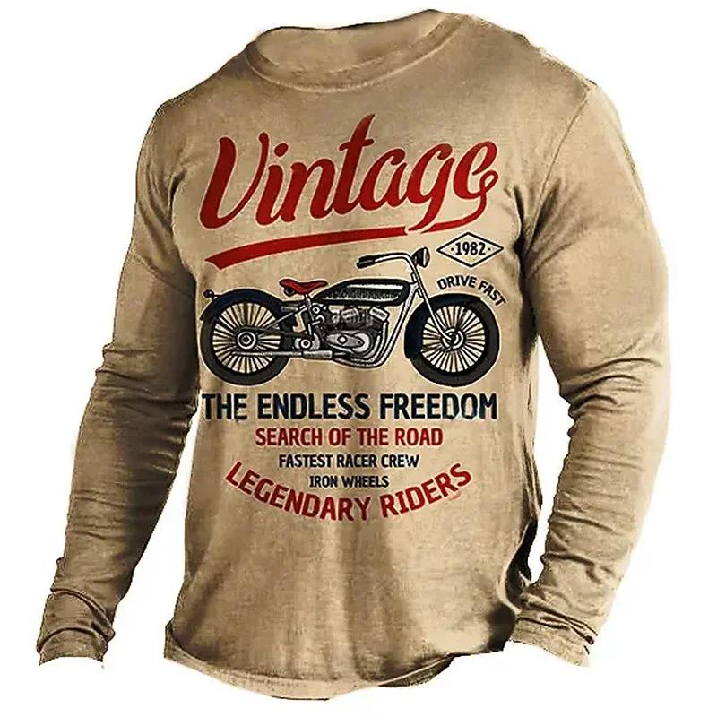 Винтажная мотоциклетная осенняя мужская футболка с 3D принтом и круглым вырезом, повседневные футболки большого размера с длинными рукавами, модные топы, трендовая мужская одежда