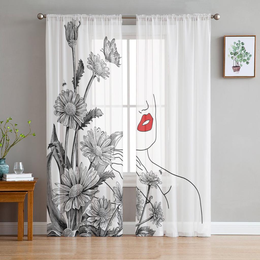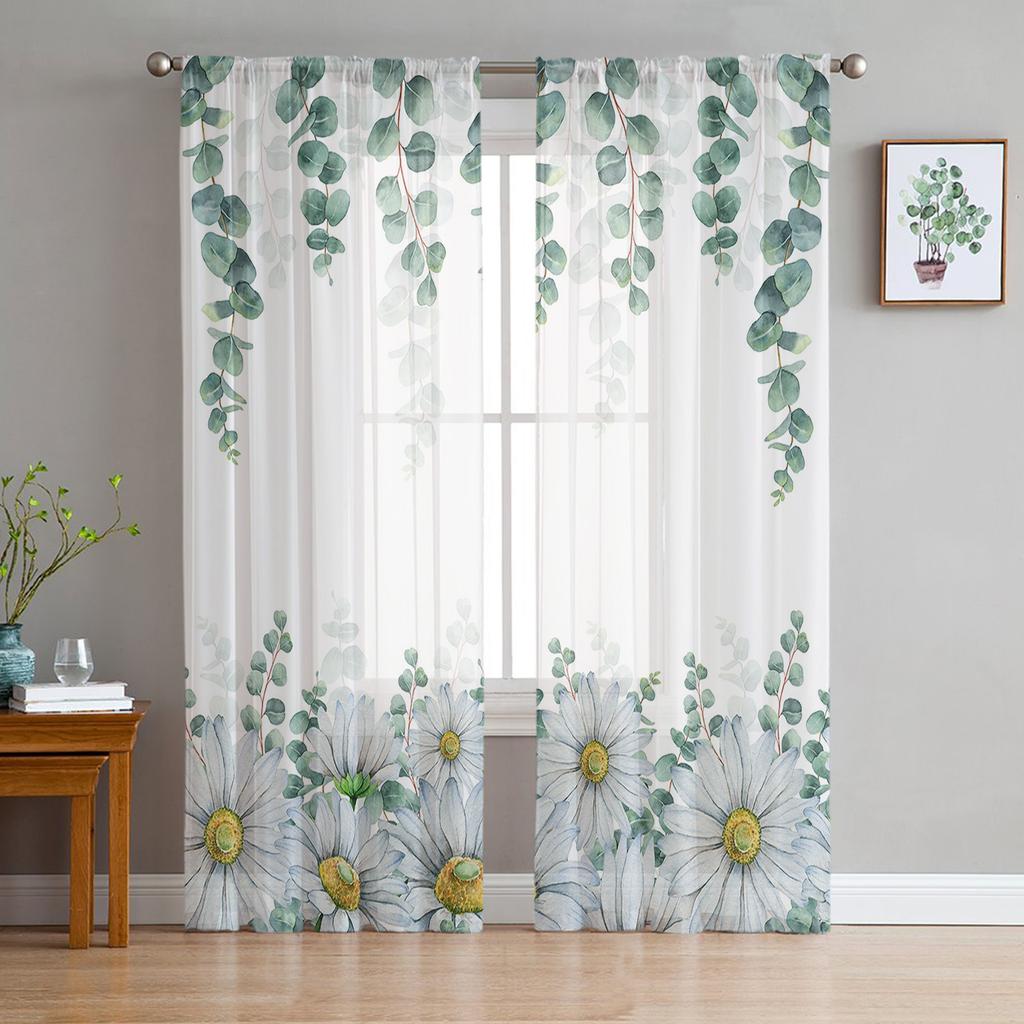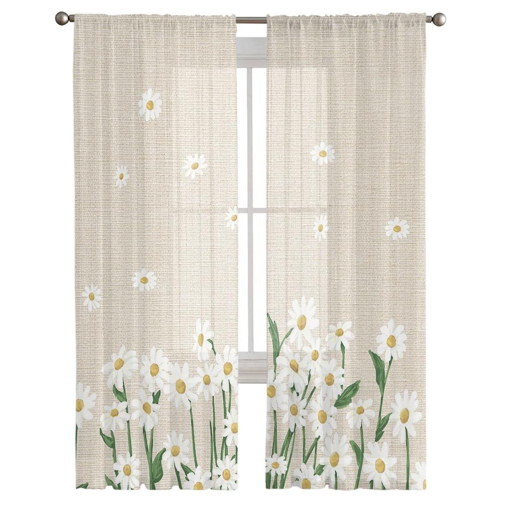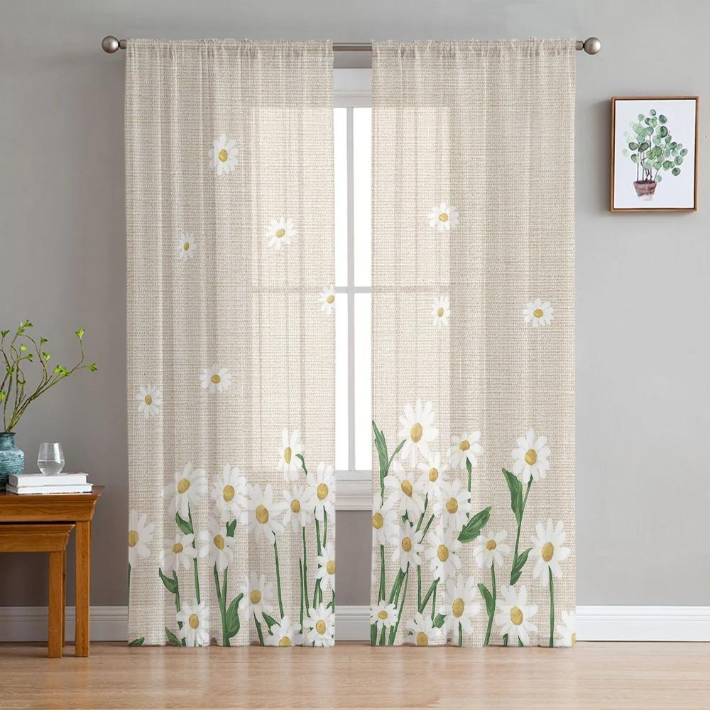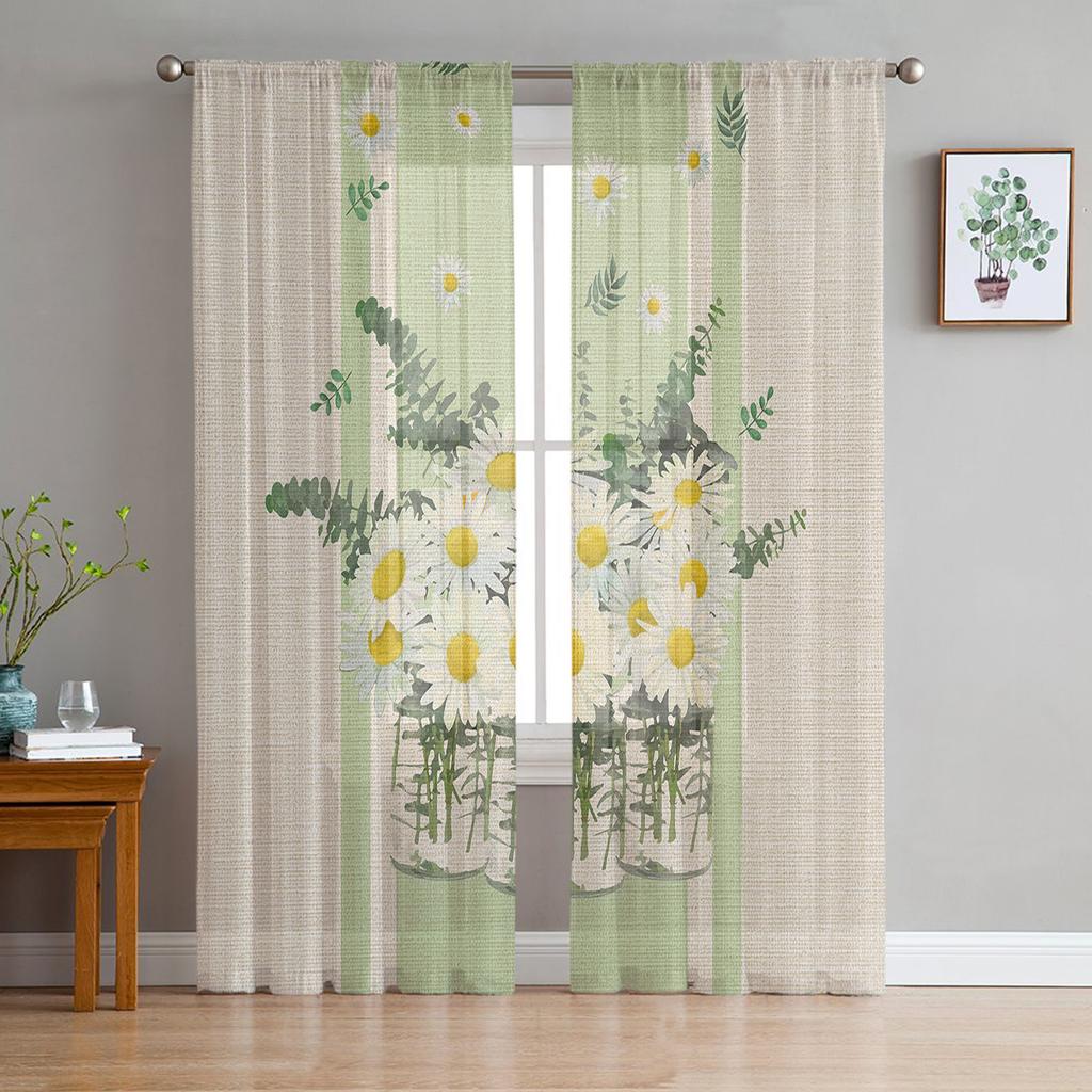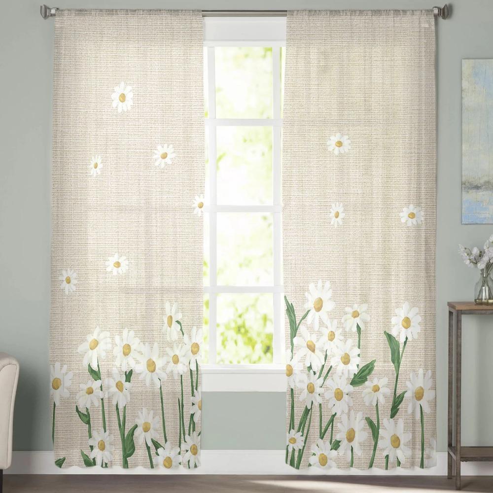 Цветочные ромашковые тюлевые шторы для гостиной, спальни, шифоновая прозрачная вуаль, кухонные оконные шторы, драпировки