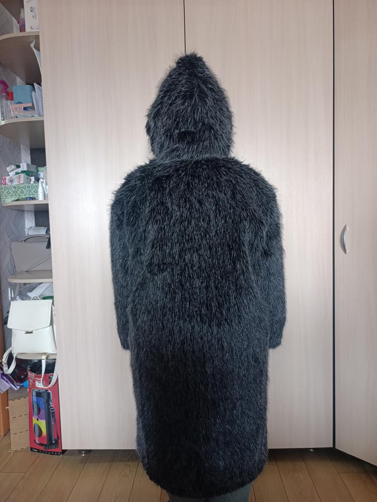 Совсем не похоже на фотографию. Цвет не такой, там пышный отворот, а в изделии вообще нет отворота, и капюшон непонятной формы. В этой шубе только волка изображать на детском утреннике.