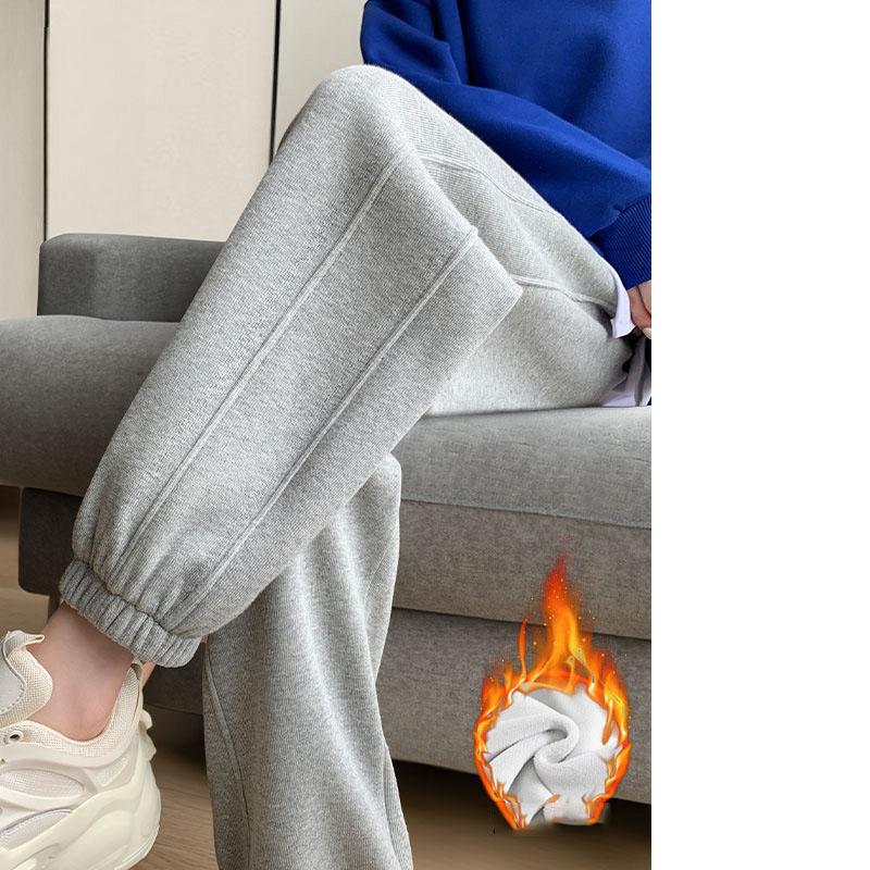 Утолщенные женские спортивные брюки с флисовой подкладкой, с высокой талией, свободного кроя, утягивающие, повседневные, универсальные, осень и зима