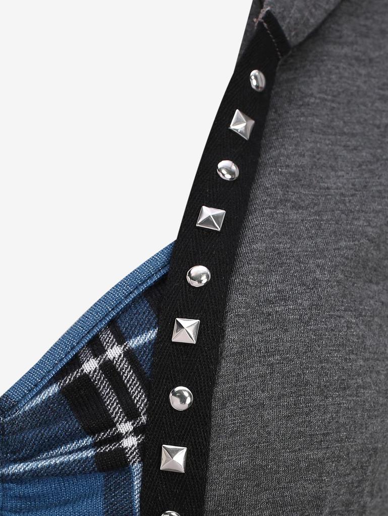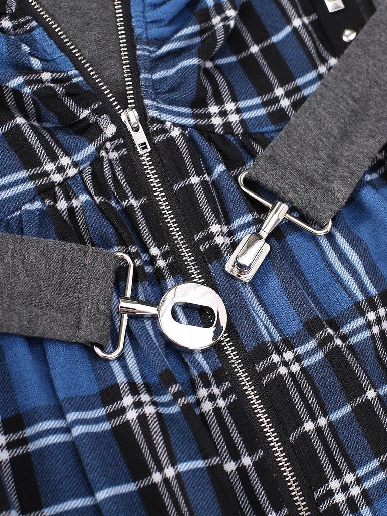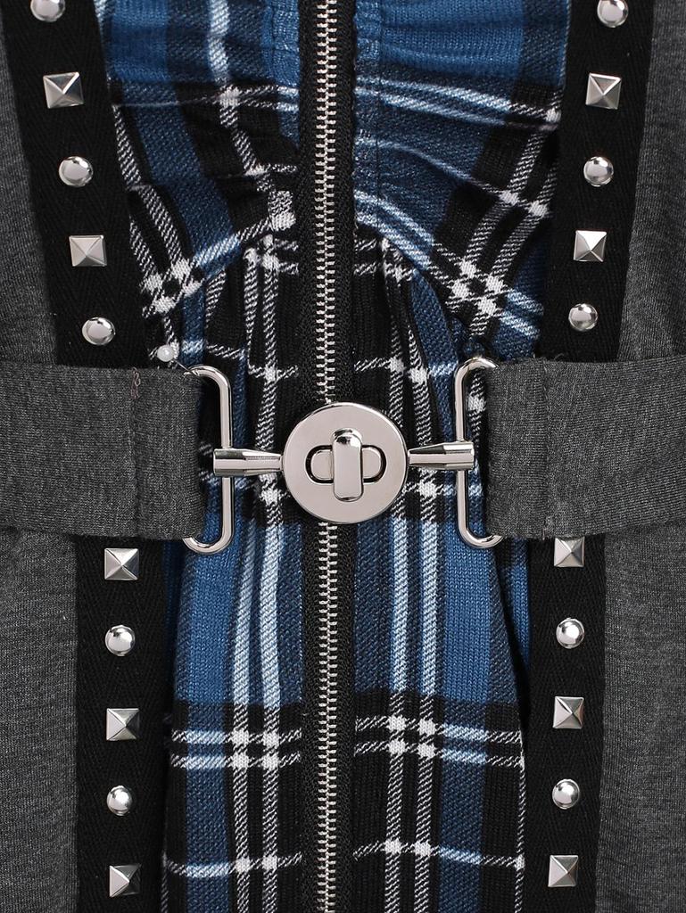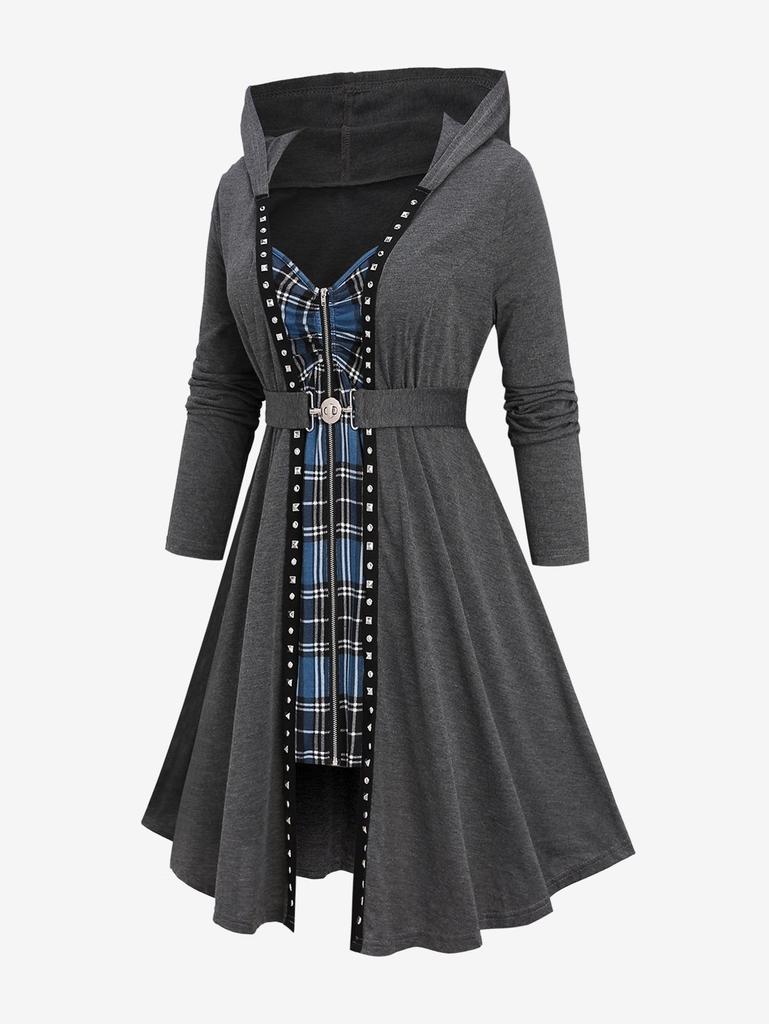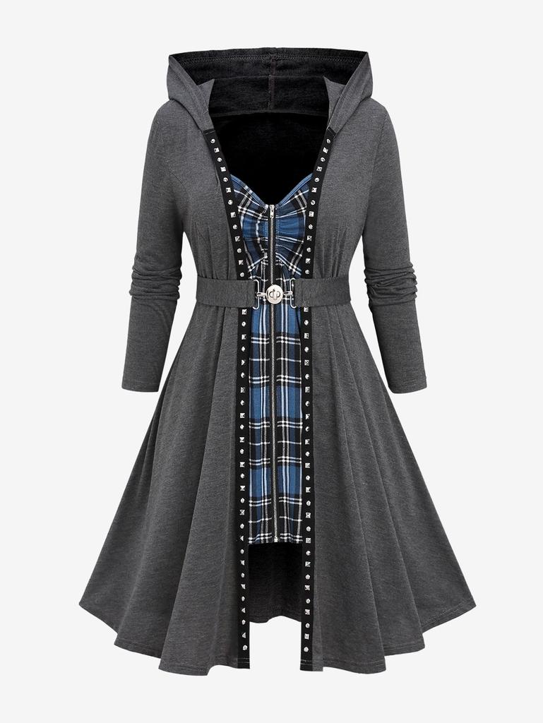 Пальто Rosegal Plus Size с капюшоном, застежкой-молнией в клетку, с заклепками, пряжкой, рюшами и поясом