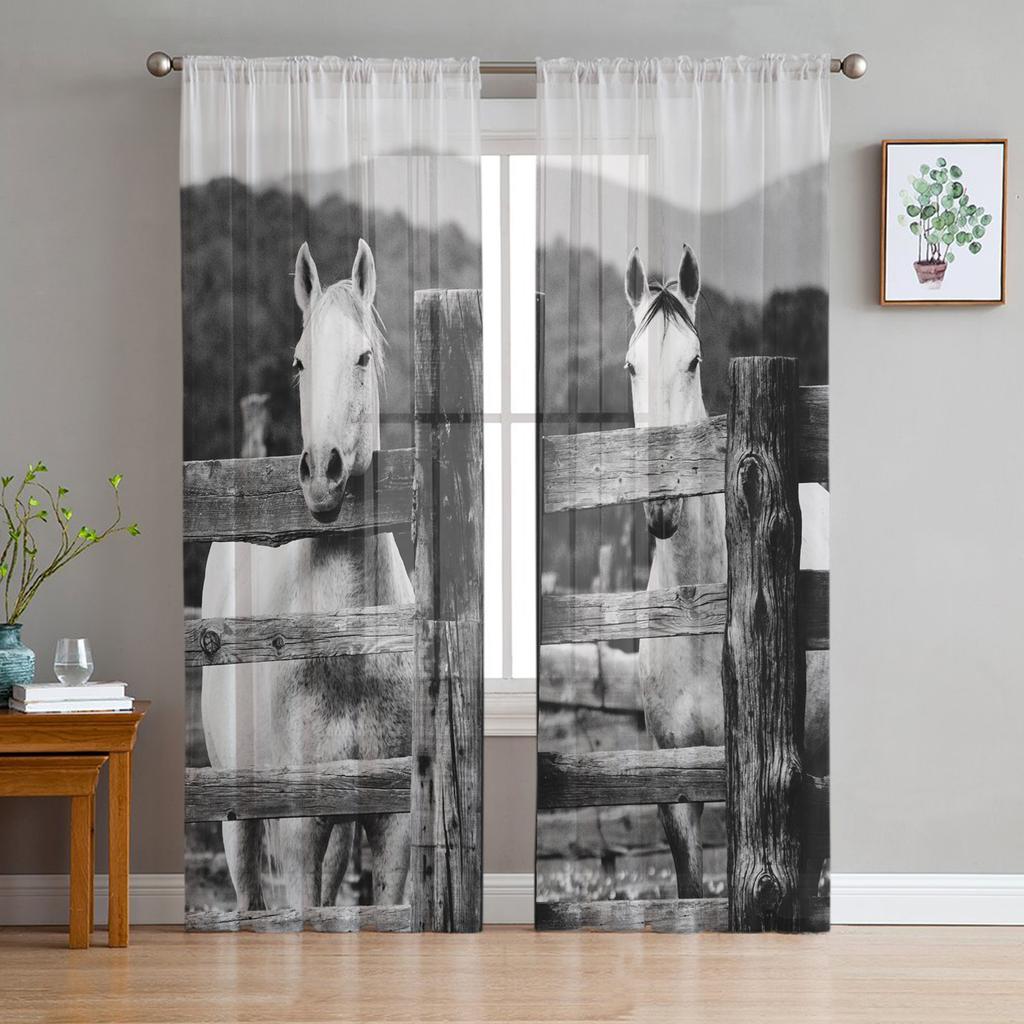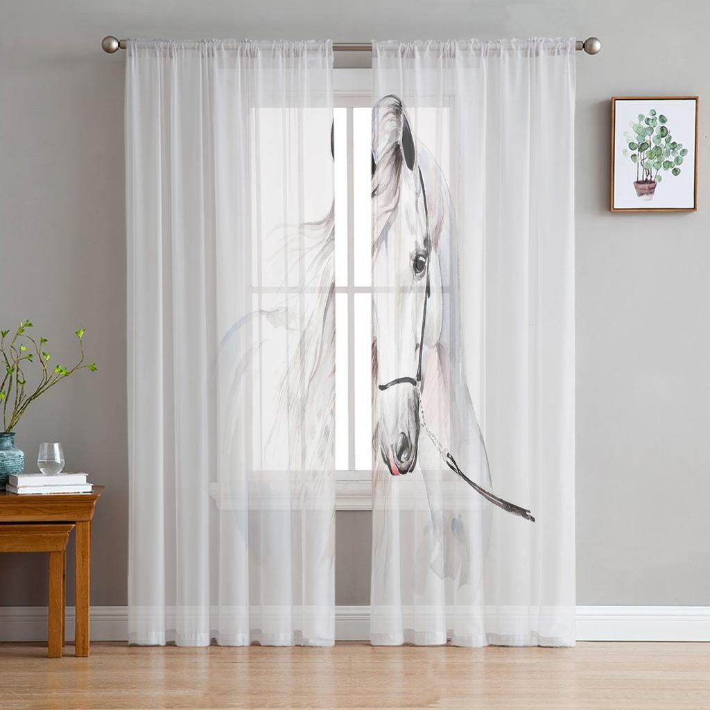 Черно-белая лошадь, акварельная живопись, тюлевые прозрачные оконные шторы для гостиной, кухни, детской спальни, вуаль, подвесная занавеска
