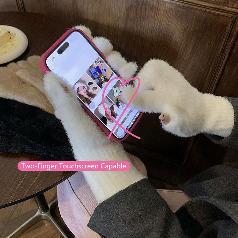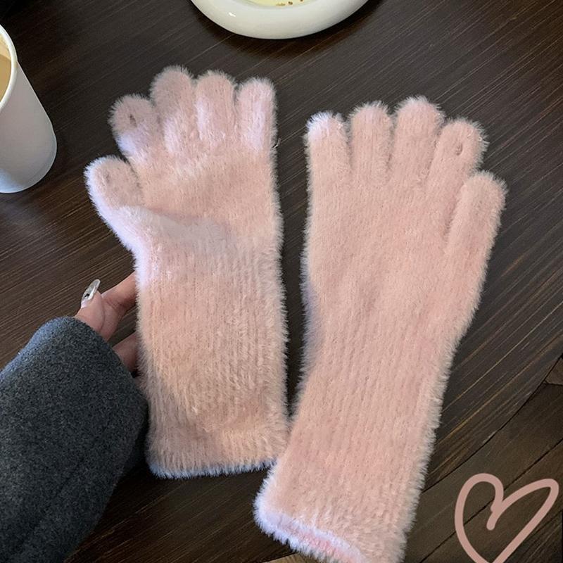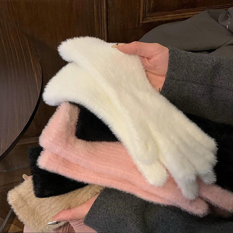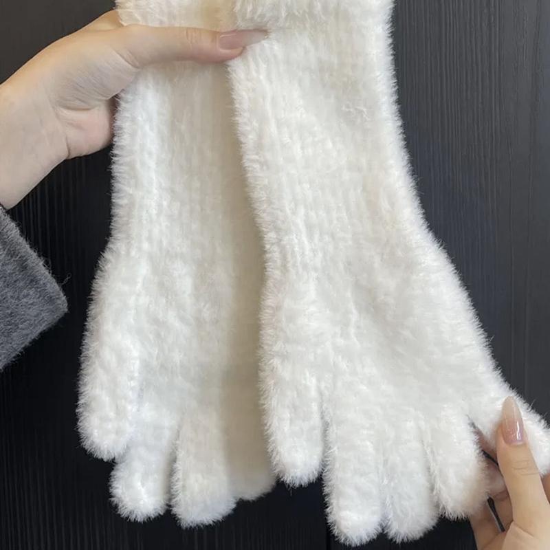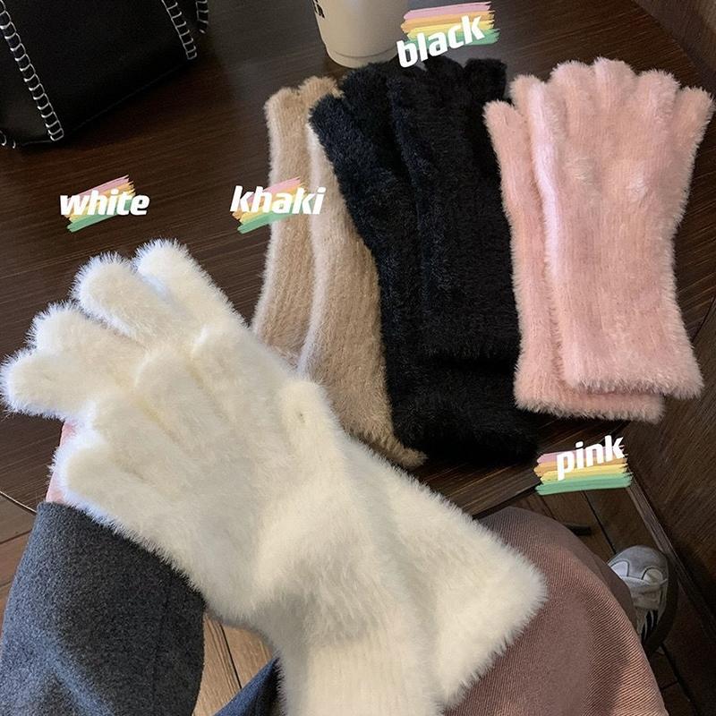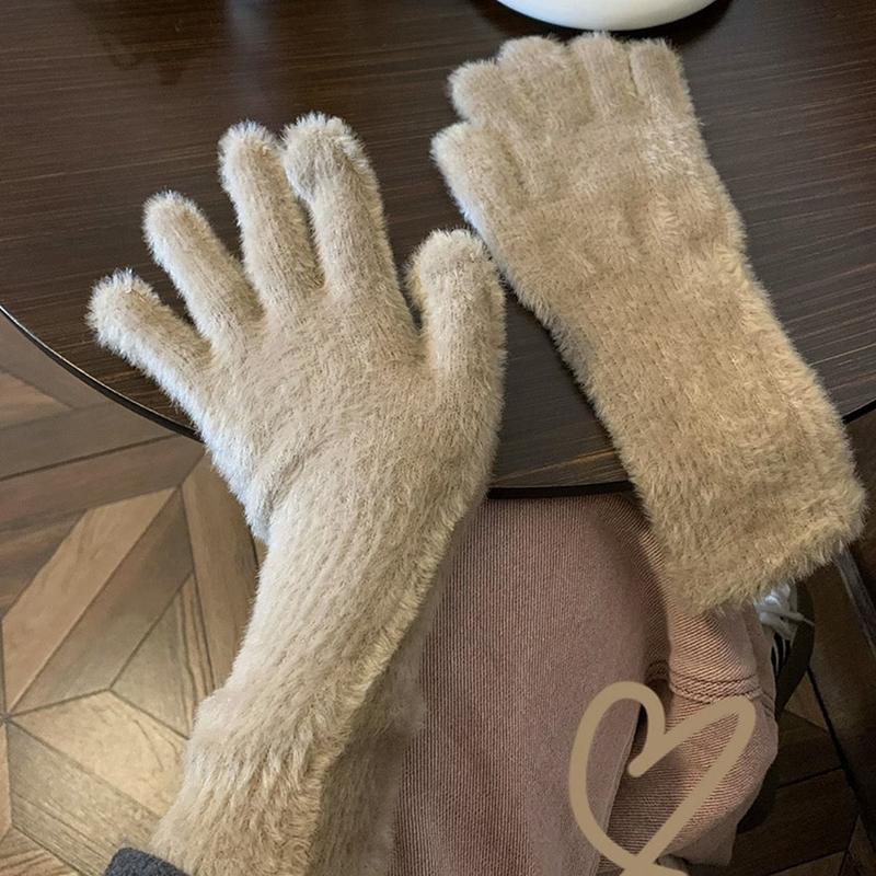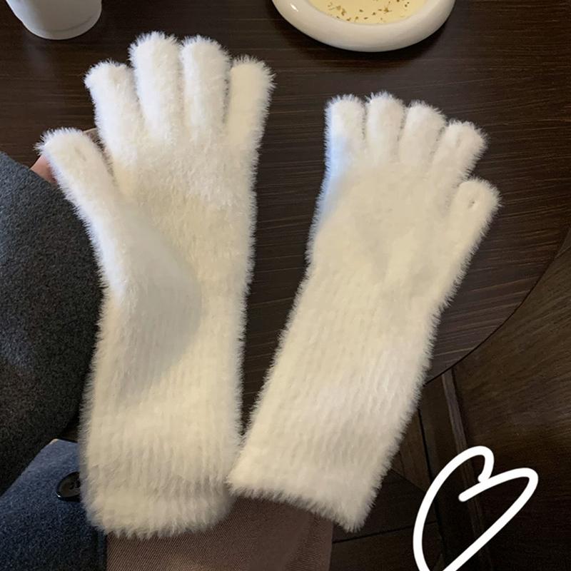 Женские перчатки холодные пушистые зимние открытые пальцы сенсорный экран теплые корейская версия верховая езда студент письмо