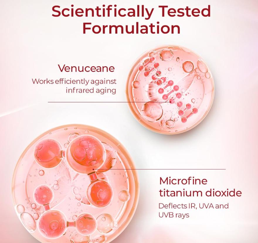 Он защищает кожу от UVA, UVB и инфракрасного излучения и уменьшает воспалительные повреждения, тем самым способствуя здоровью и защите кожи.