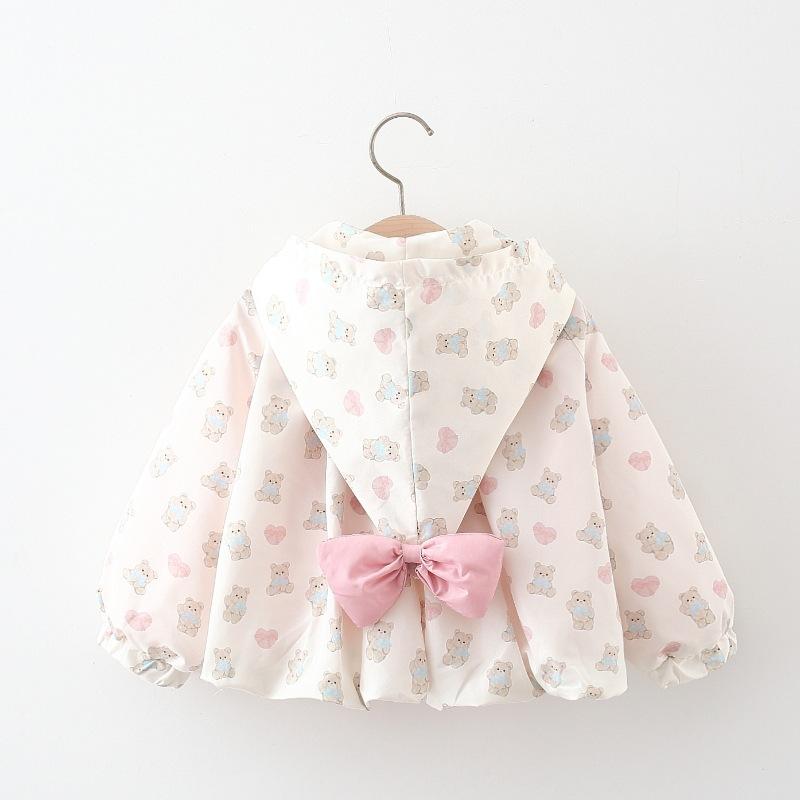Детская одежда Пальто для девочек Весна и осень Детская детская одежда с бантом для девочки Мультфильм Медведь Большая шапка Верхняя одежда Детская осенняя одежда