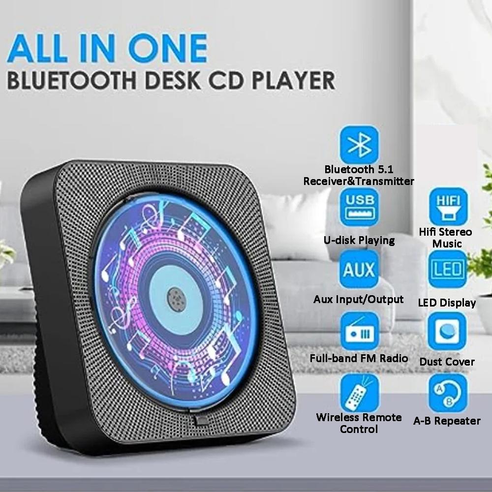 1.Дизайн рабочего стола: легко устанавливается на столе без сборки или другой поддержки. Сделайте свой дом более элегантным и артистичным.(УВЕДОМЛЕНИЕ: У этого проигрывателя компакт-дисков есть передняя крышка)