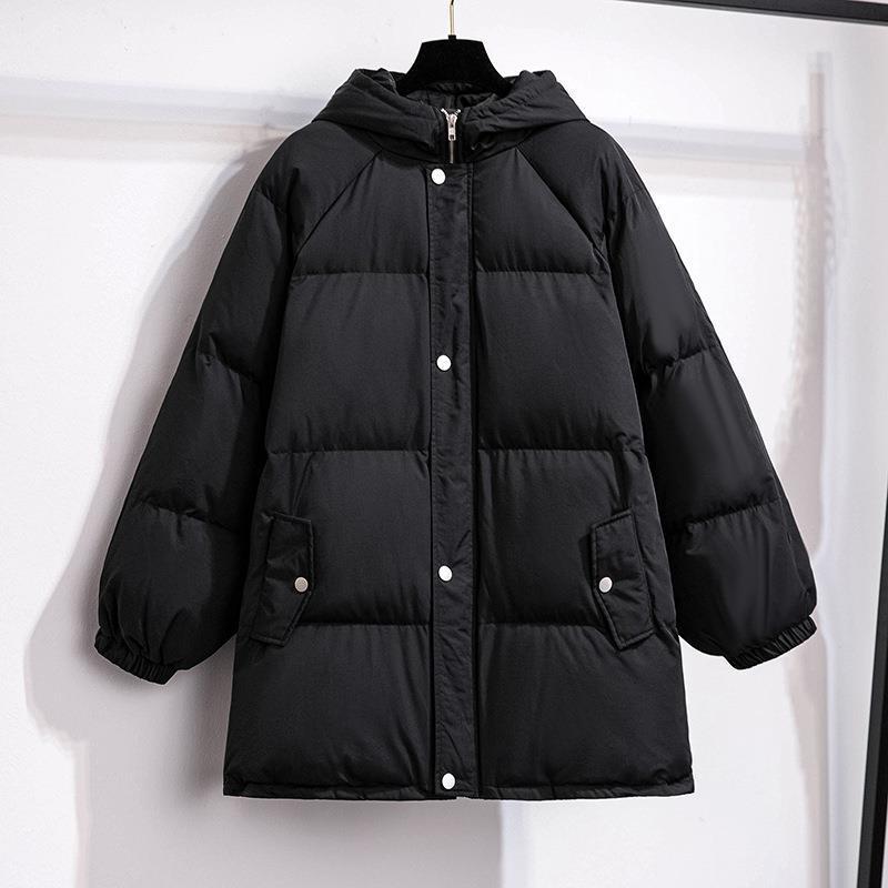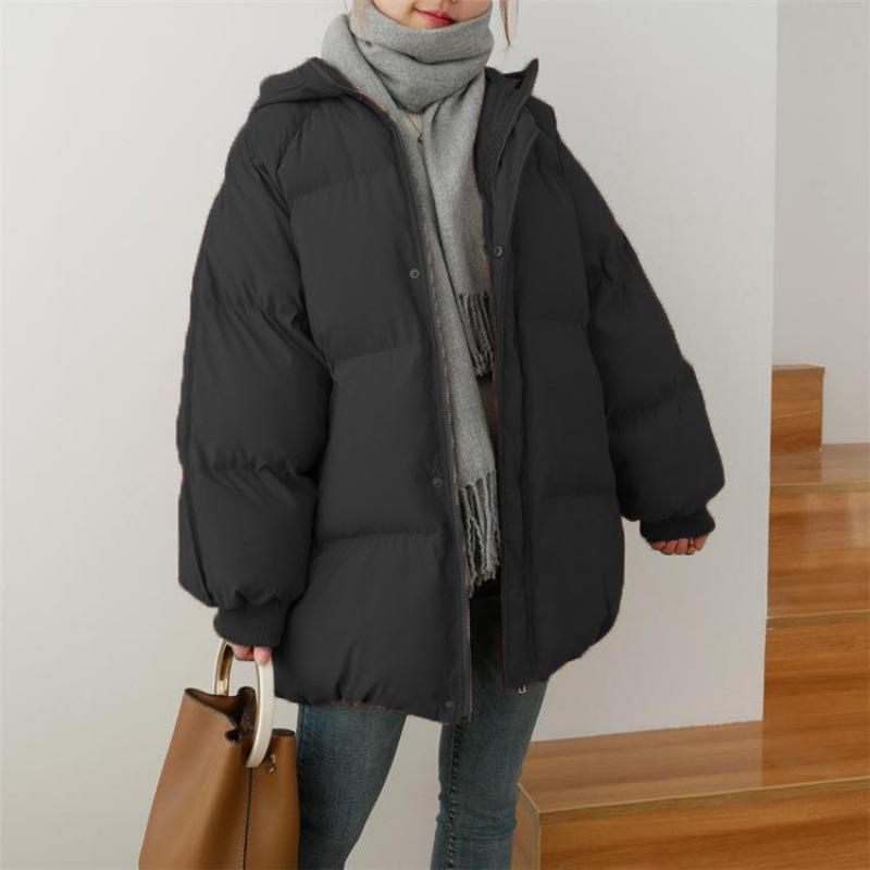 Осенне-зимняя женская куртка больших размеров средней длины с капюшоном, утолщенная однотонная свободная куртка на молнии для отдыха