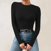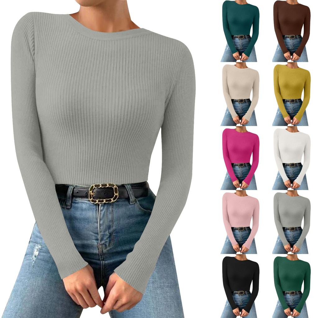 Женская однотонная футболка с круглым вырезом и вертикальными длинными рукавами