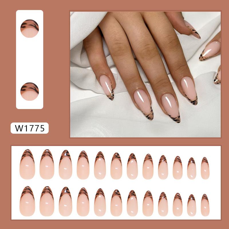 Накладные ногти, накладные ногти, леопардовый принт, французские накладные ногти, простые съемные ногти, миндалевидные ногти, 24 шт.