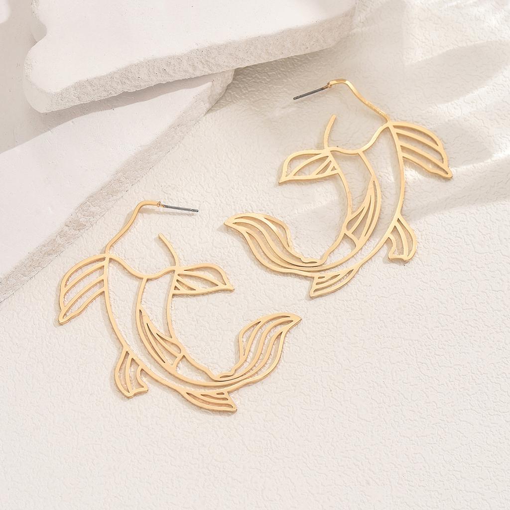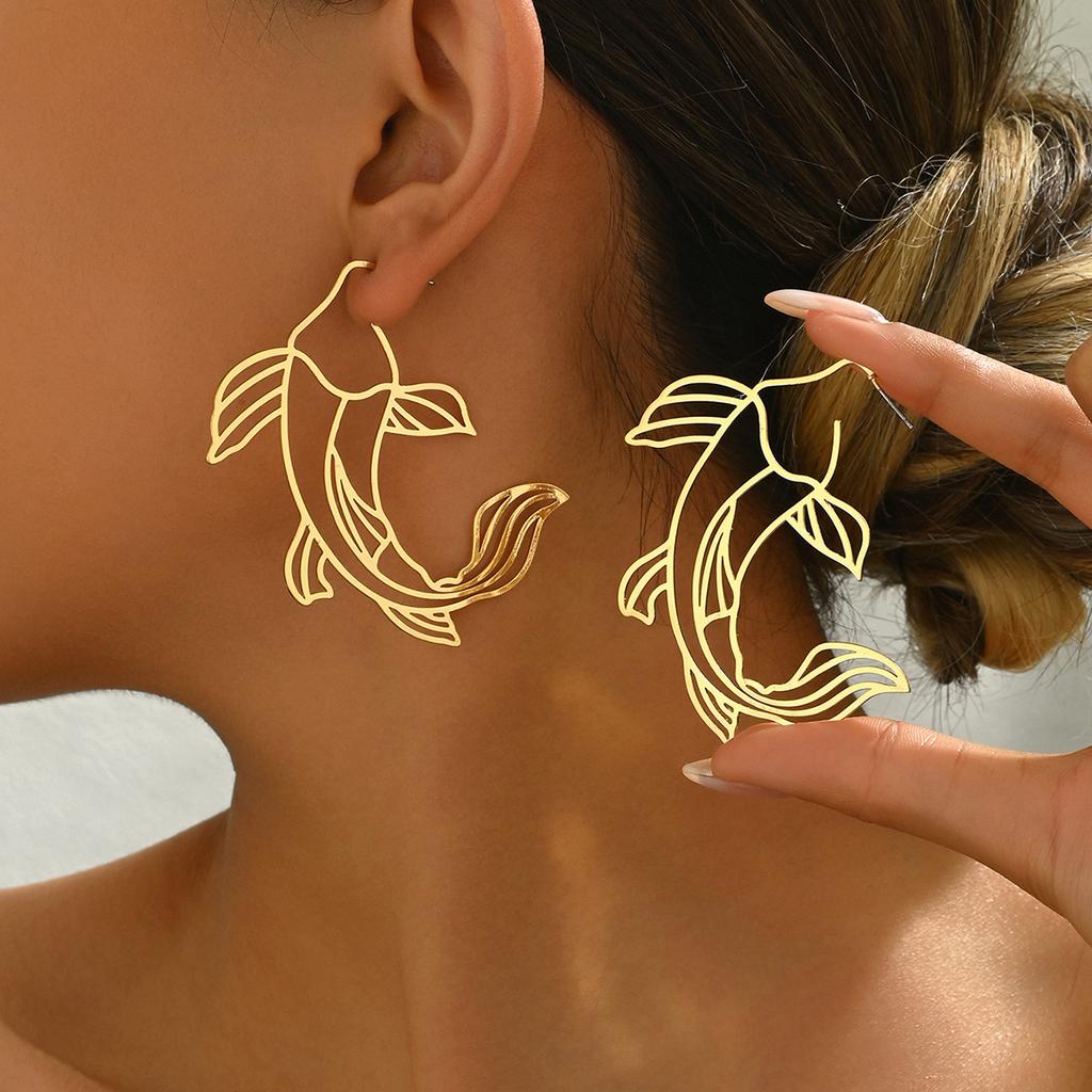 1 пара забавных ажурных простых модных металлических женских сережек с текстурой в виде карпа для повседневных путешествий, свиданий, подарков, вечеринок