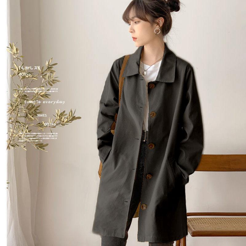 Минималистское пальто средней длины для ранней осени, свободный крой, универсальная куртка для студентов, однотонная
