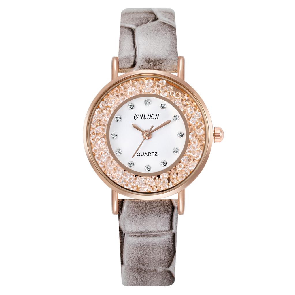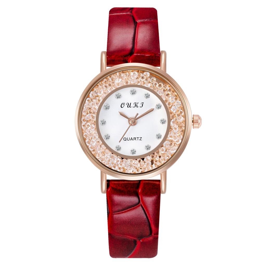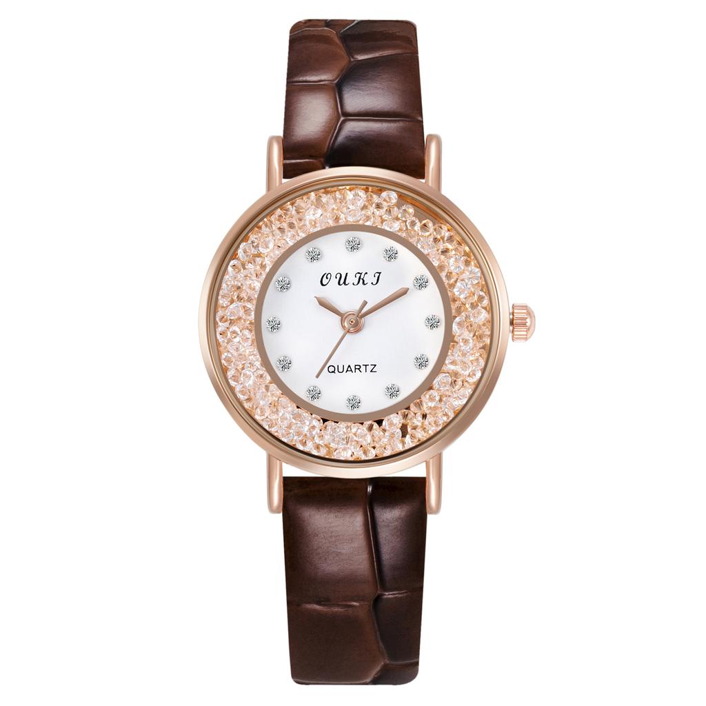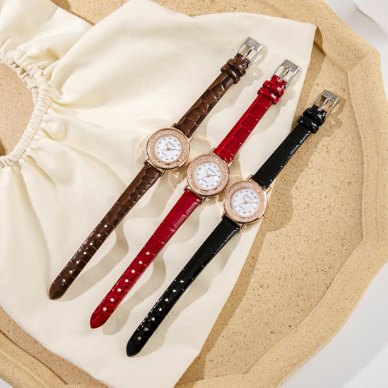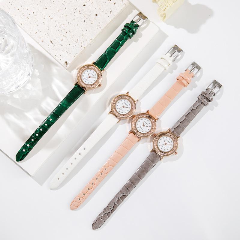 Кварцевые наручные часы для девочек со стразами, двухслойные круглые женские часы в стиле ретро с маленьким циферблатом и кожаным ремешком, простые бусины в стиле