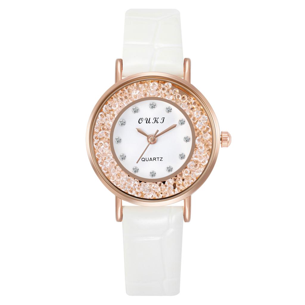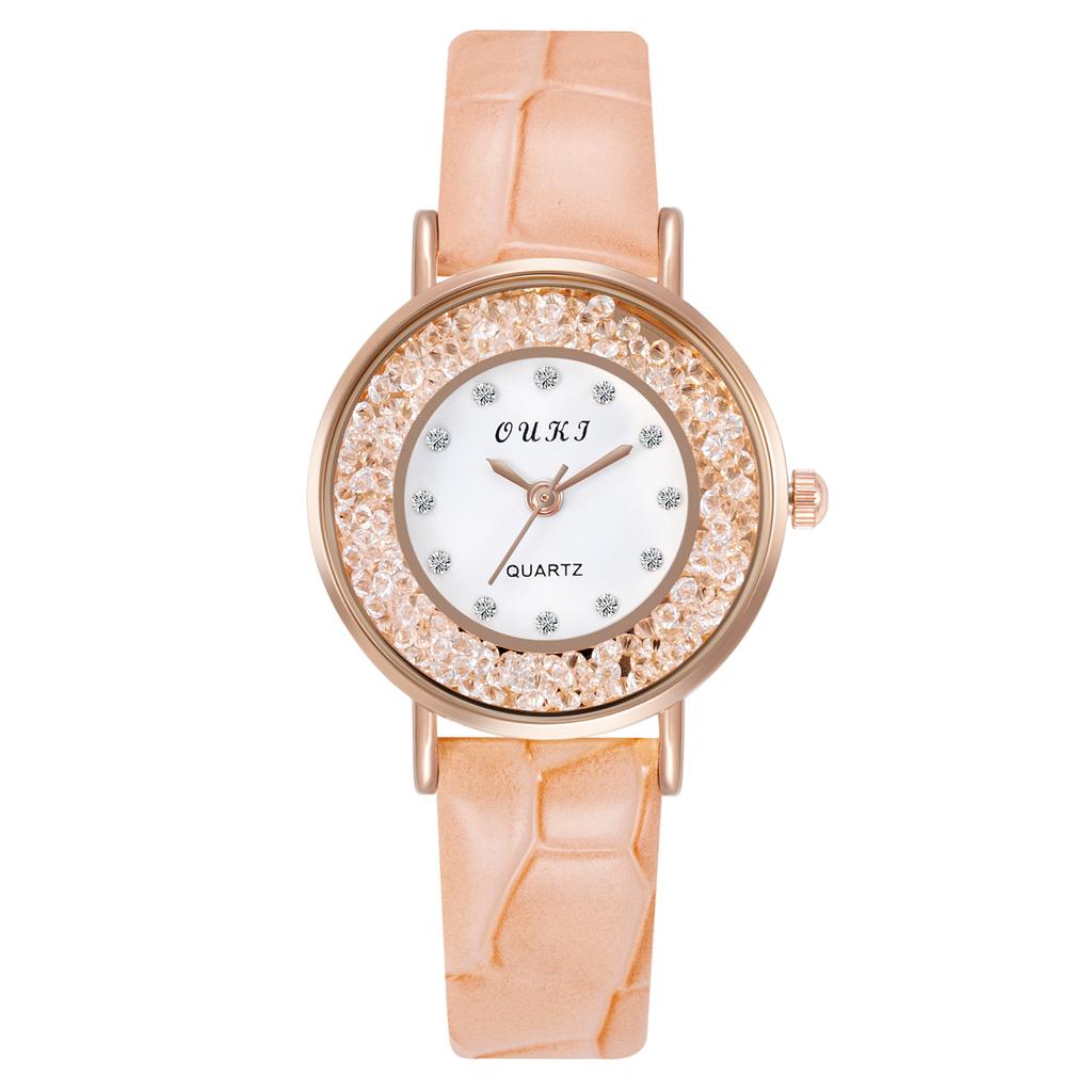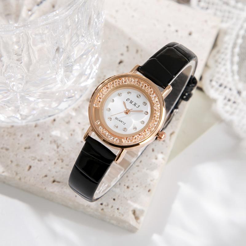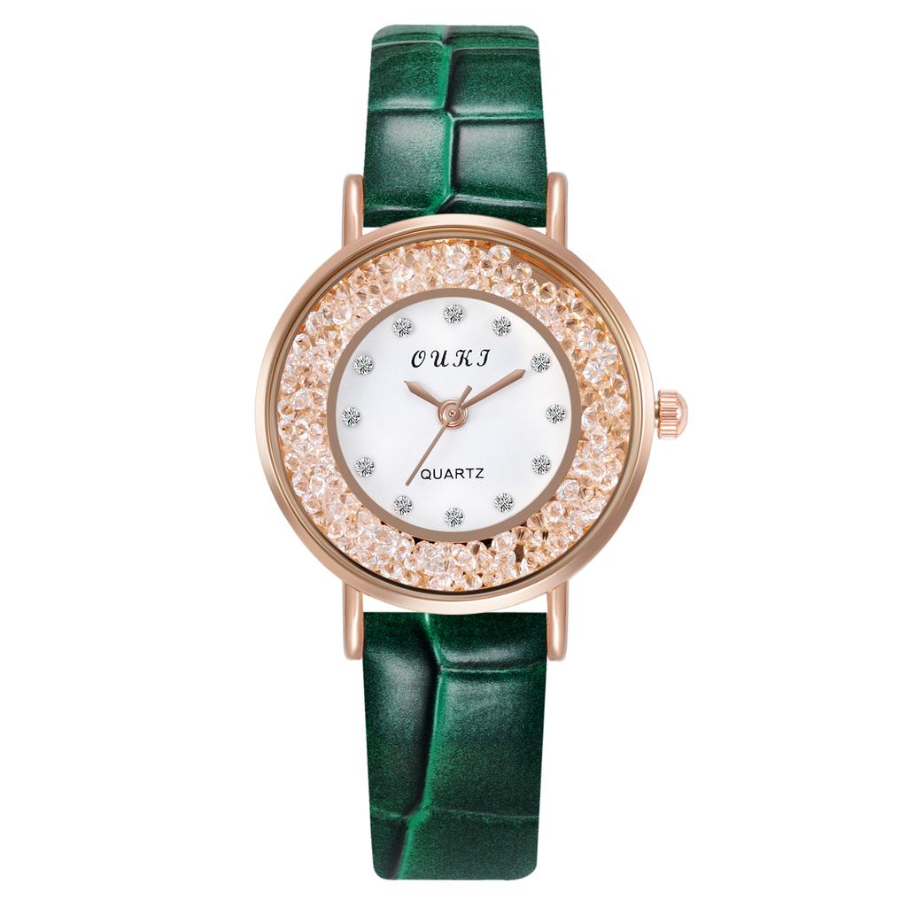 Кварцевые наручные часы для девочек со стразами, двухслойные круглые женские часы в стиле ретро с маленьким циферблатом и кожаным ремешком, простые бусины в стиле