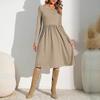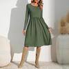 Женские однотонные повседневные платья с карманами на весну с круглым вырезом и длинными рукавами
