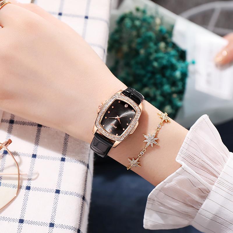 Квадратные часы с кожаной полоской, декоративные наручные часы, модные женские часы с ремешком из бриллиантов, элегантные женские часы с кристаллами в стиле ретро
