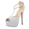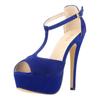 Большие размеры женские босоножки на платформе замшевые босоножки на высоком каблуке сексуальные туфли с открытым носком и ремешком на щиколотке туфли-лодочки с Т-образным ремешком туфли для вечеринки и свадьбы