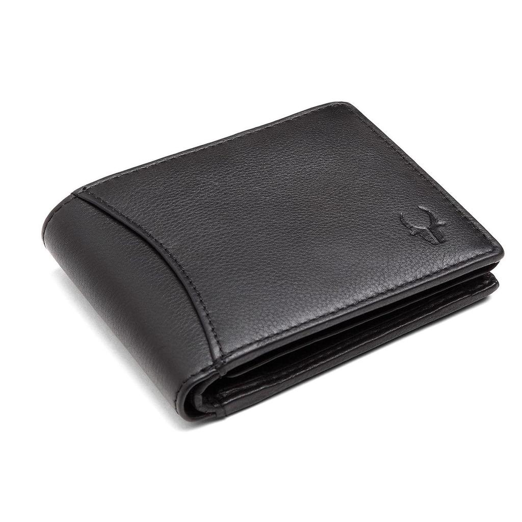 Черный кожаный мужской кошелек и синий кейс Crad