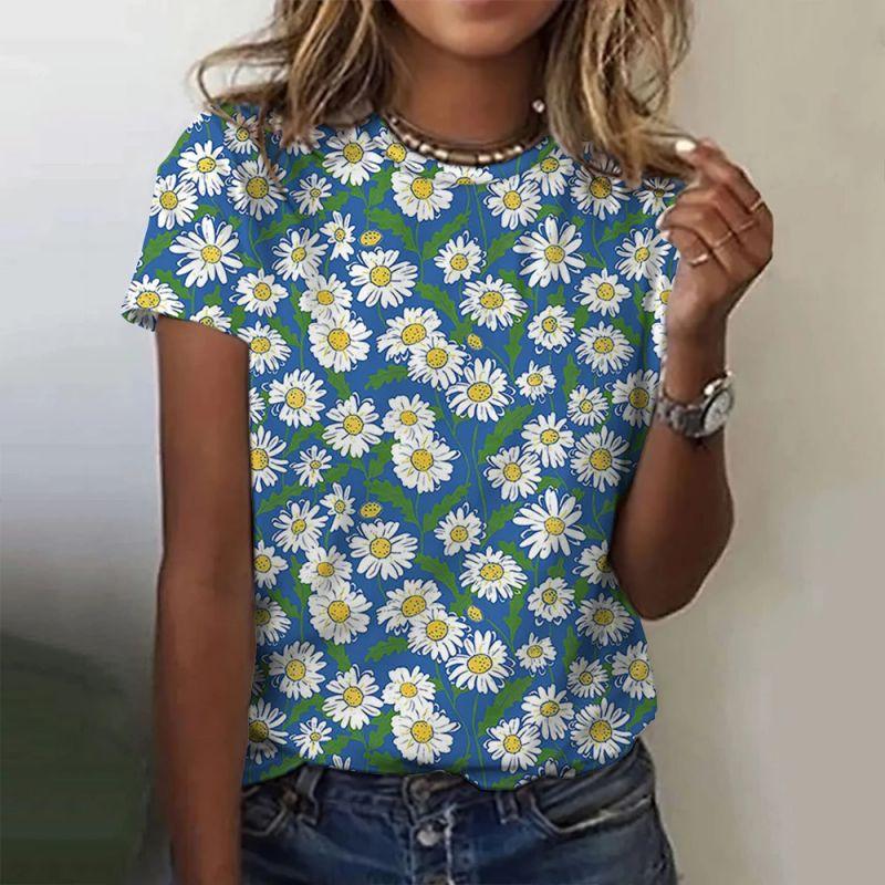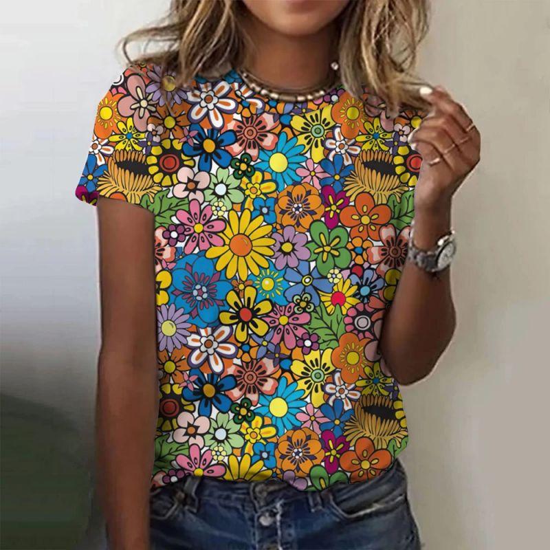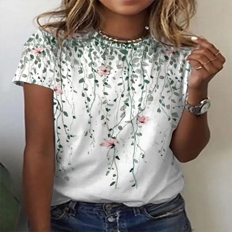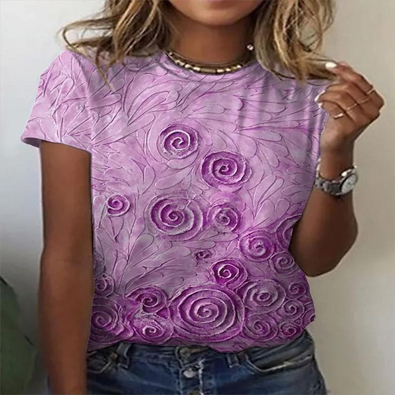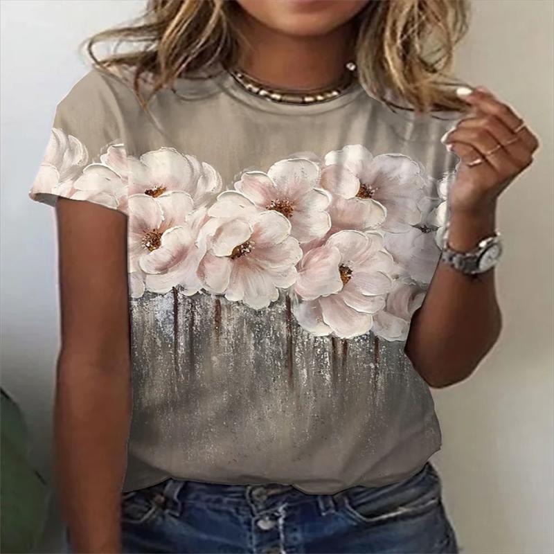 Летние модные топы с короткими рукавами, женские футболки, повседневные футболки с 3D цветочным принтом и круглым вырезом, женская одежда Y2K, футболки больших размеров