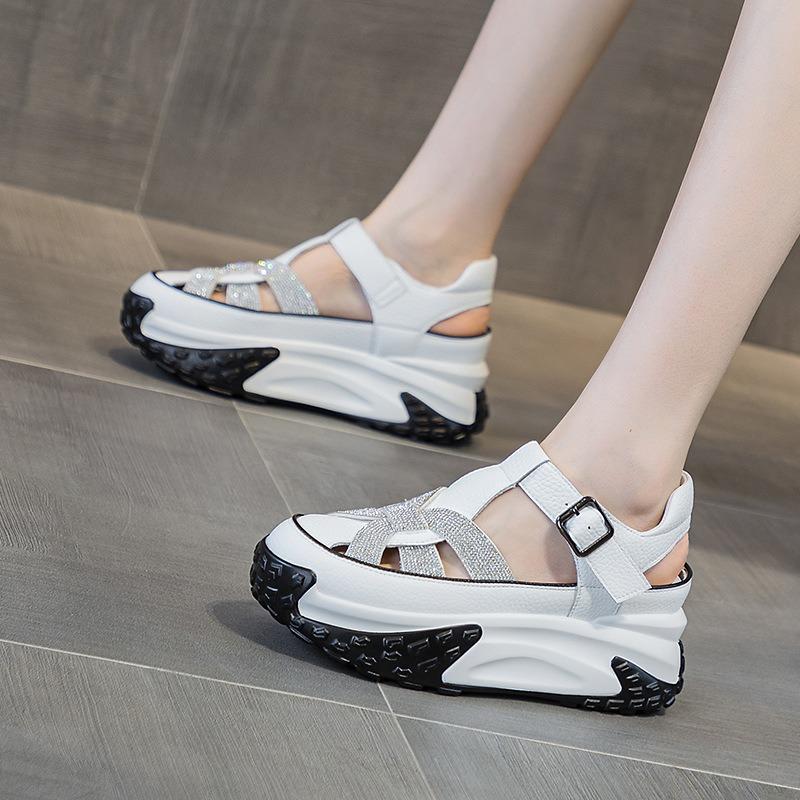 Внутреннее увеличение обуви Сандалии Толстая подошва Muffin Спортивные белые туфли